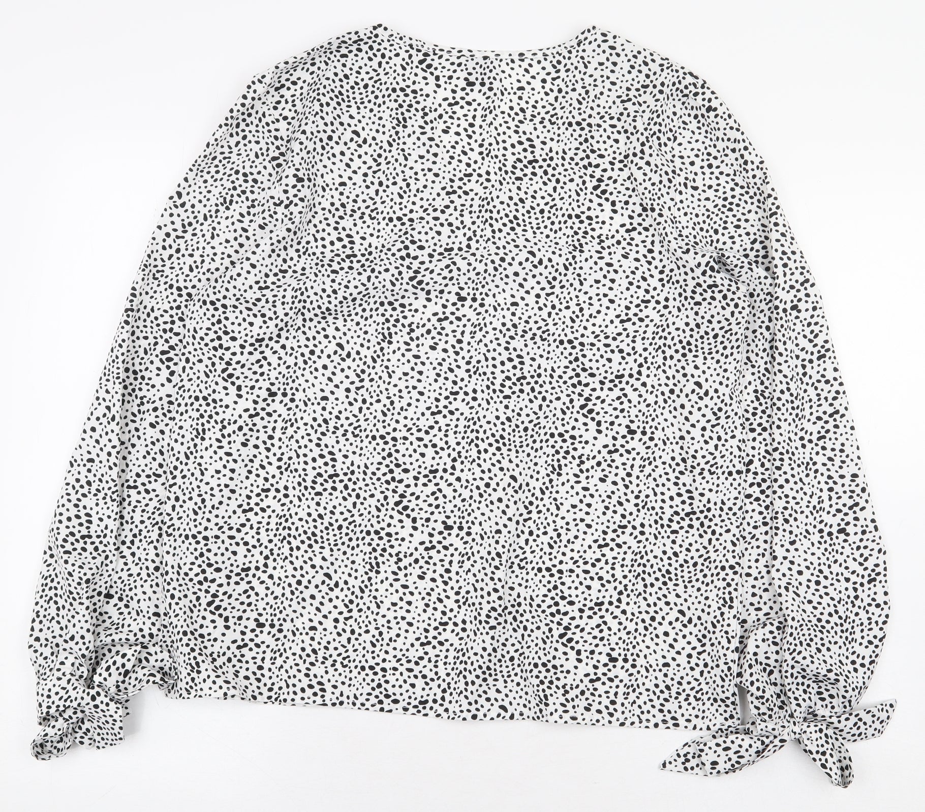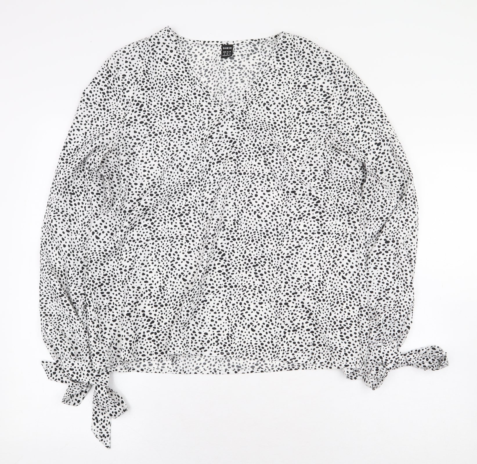 SheIn Womens White Animal Print Polyester Basic Blouse Size M V-Neck