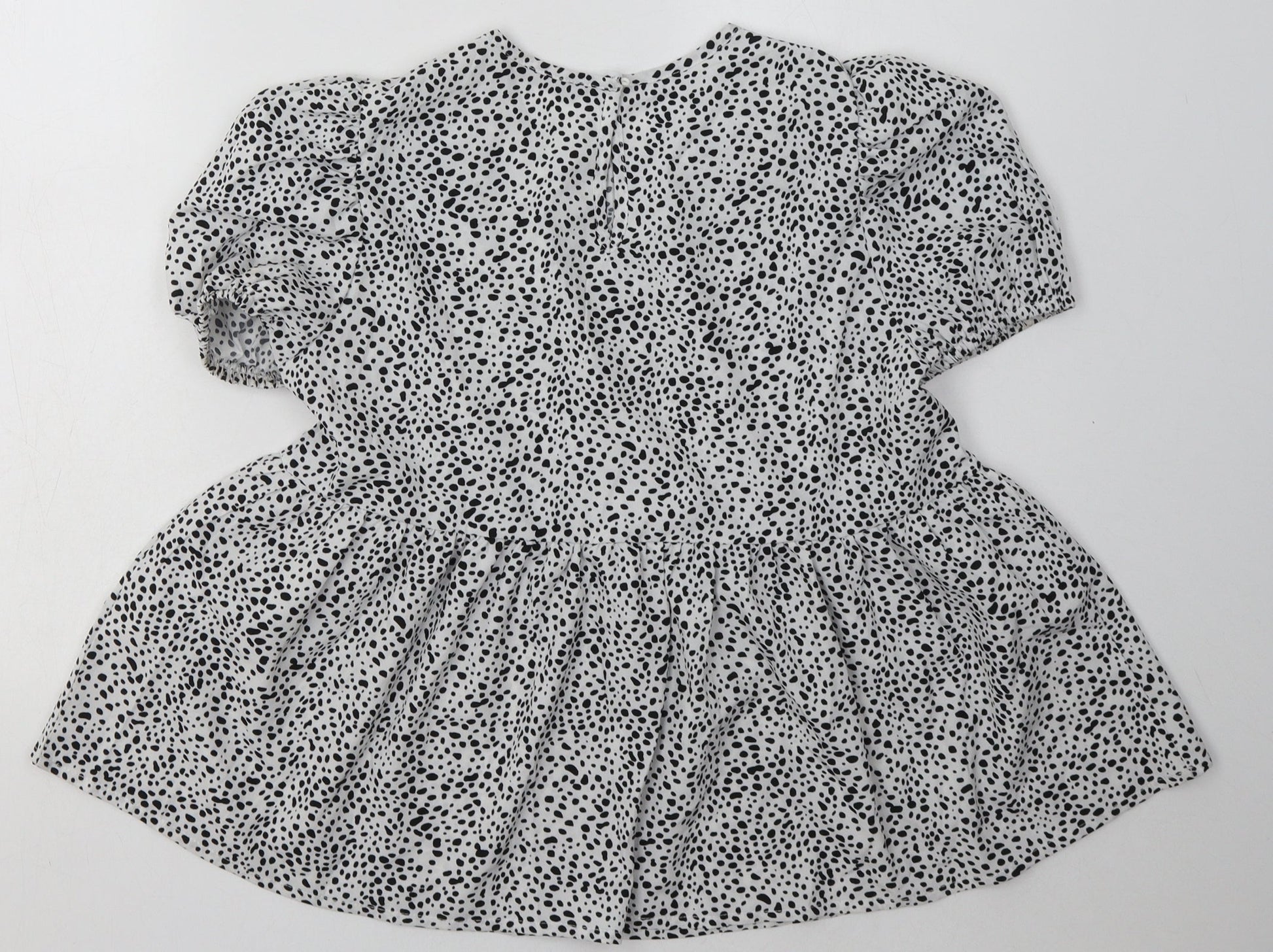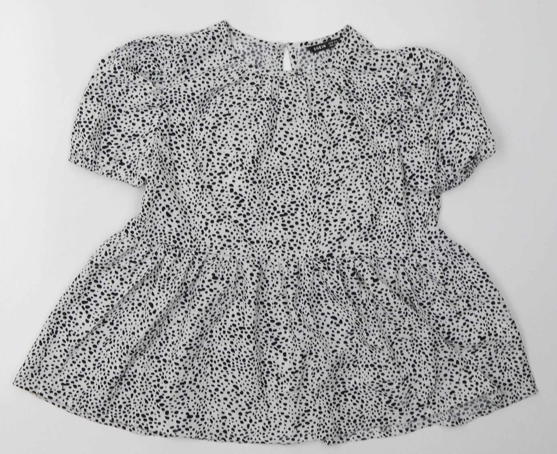 SheIn Womens White Animal Print Polyester Basic Blouse Size XS Crew Neck