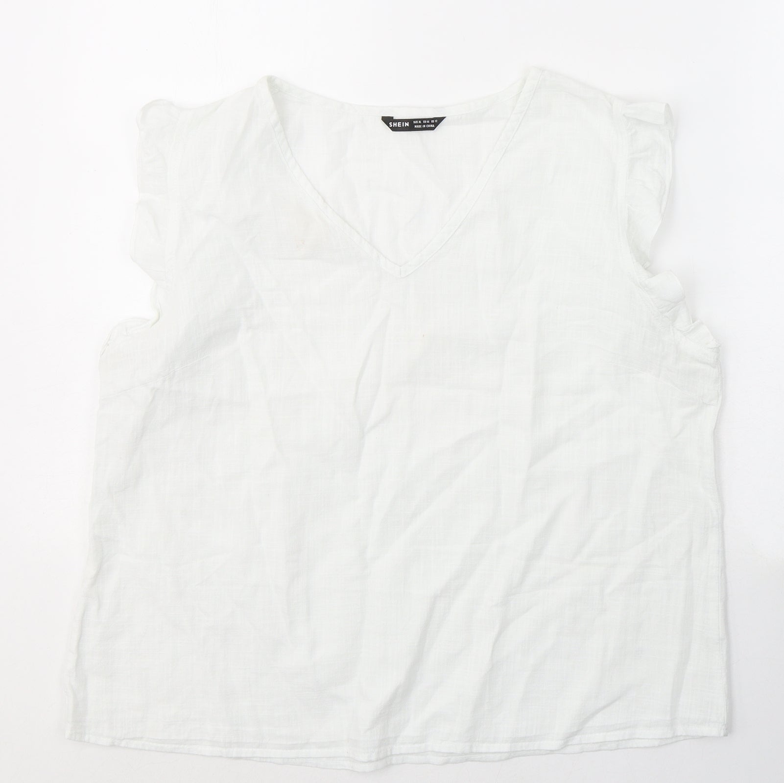 SheIn Womens White Cotton Basic T-Shirt Size XL V-Neck