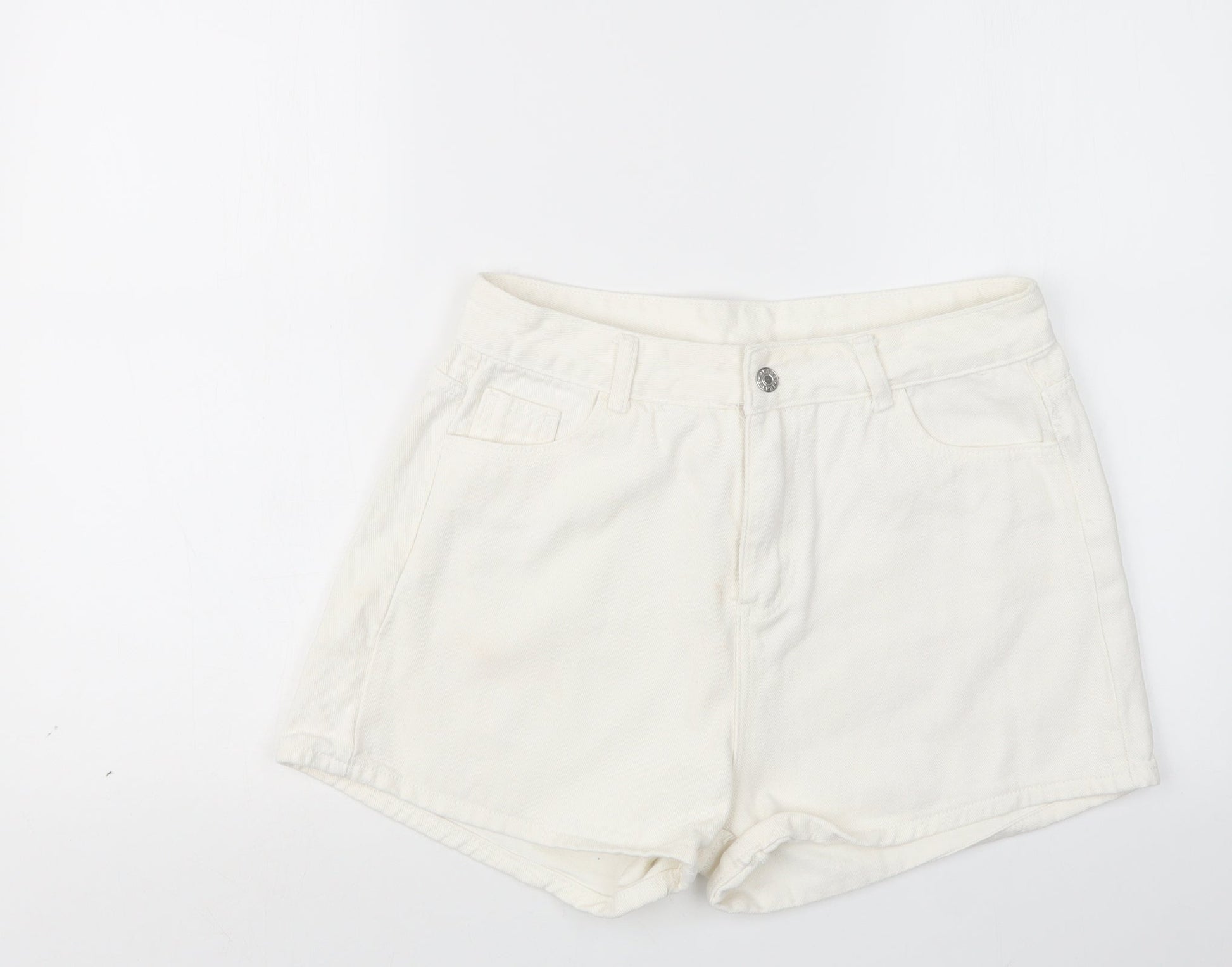 SheIn Womens White Denim Boyfriend Shorts Size L