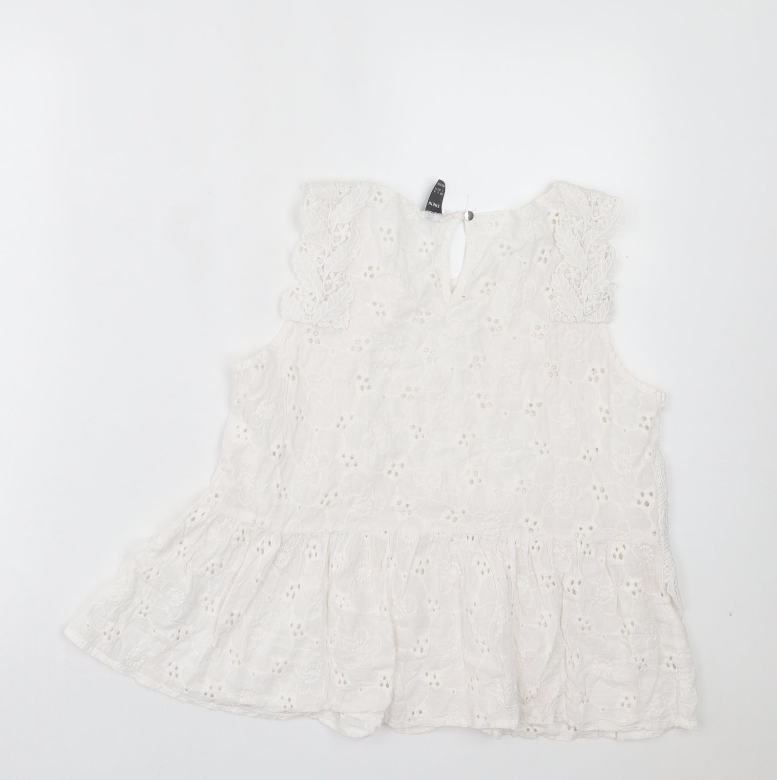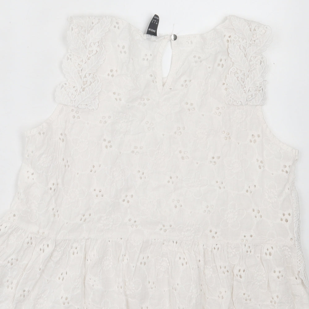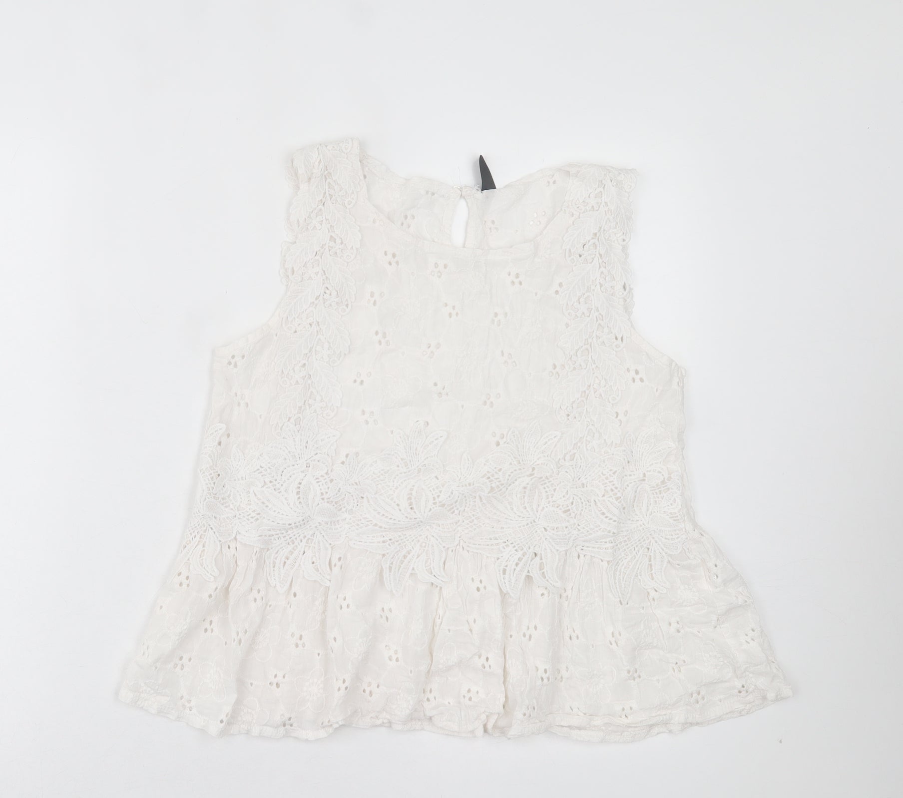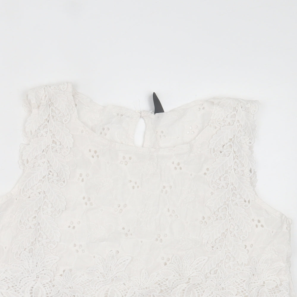 SheIn Womens White Floral Cotton Basic Tank Size L Crew Neck