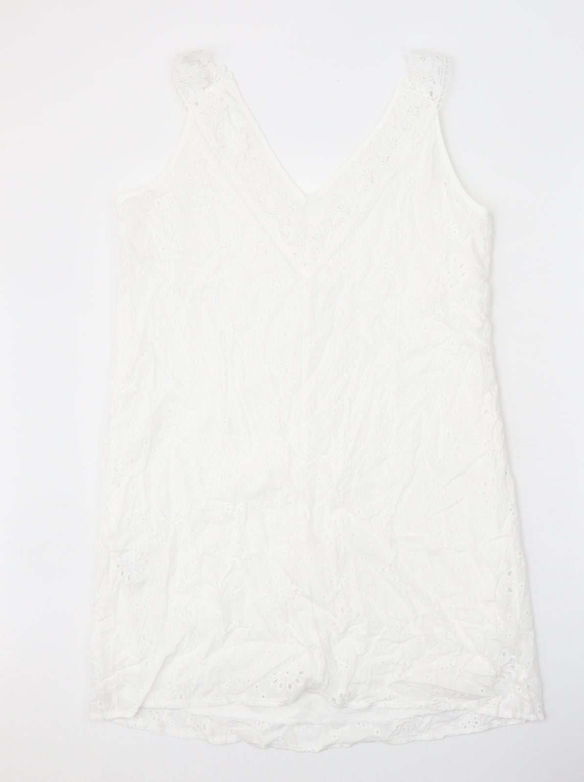 SheIn Womens White Floral Polyester A-Line Size L V-Neck Pullover