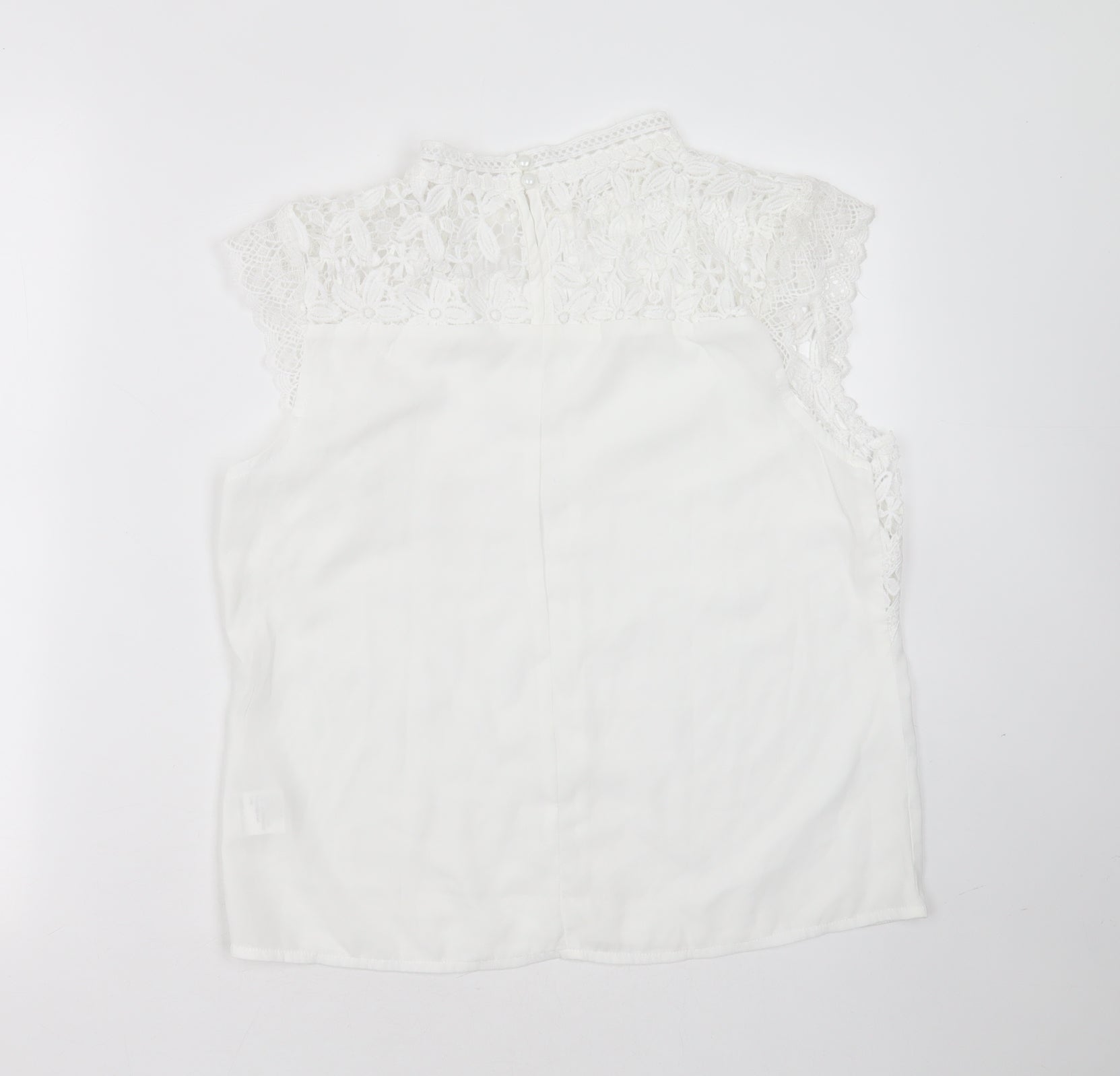 SheIn Womens White Floral Polyester Basic Blouse Size 10 Round Neck - crochet detail
