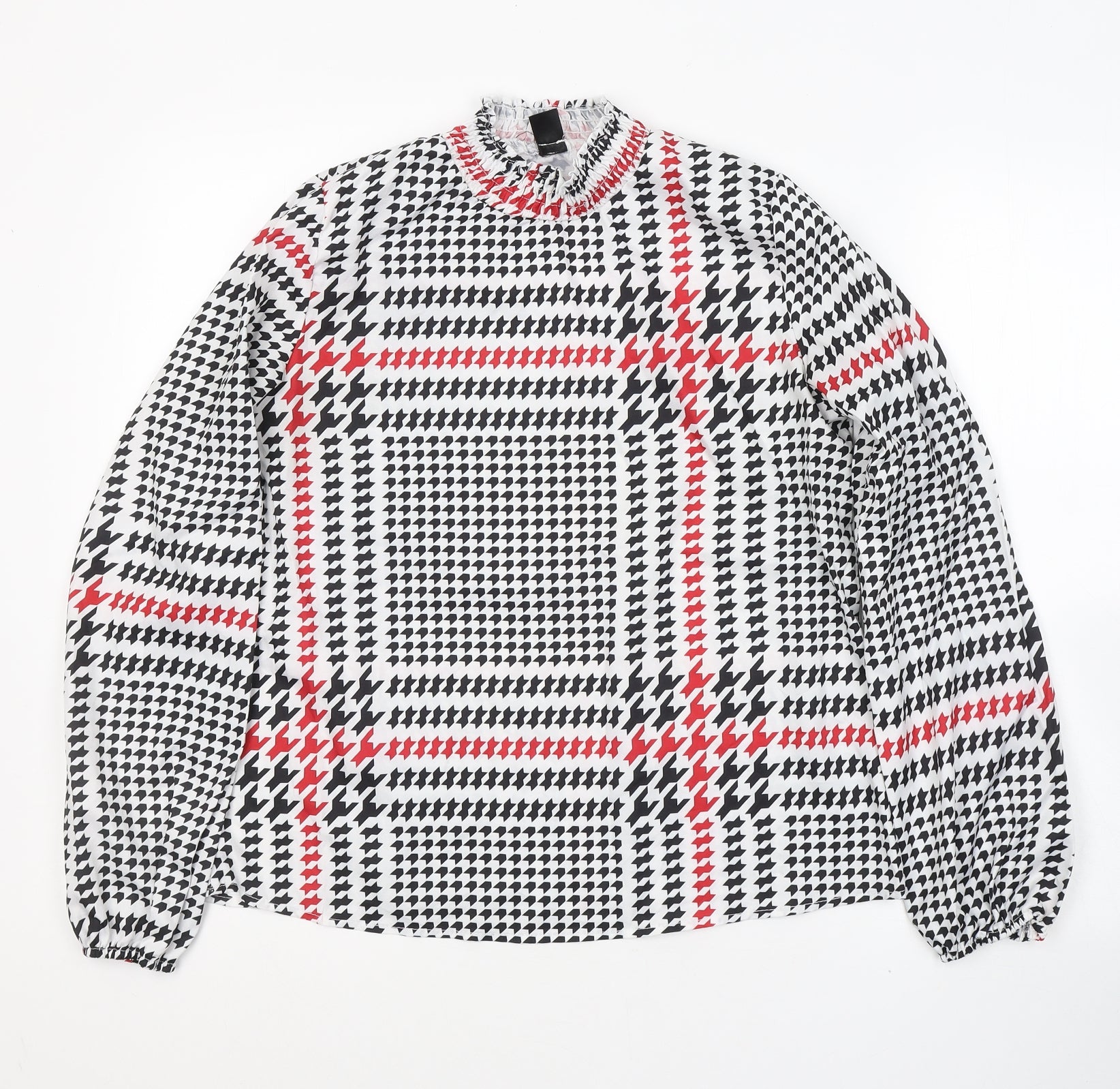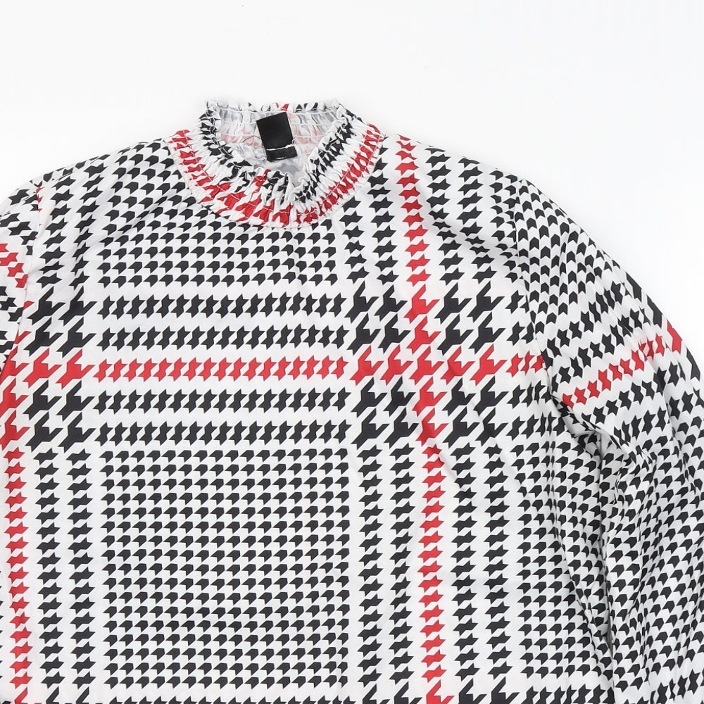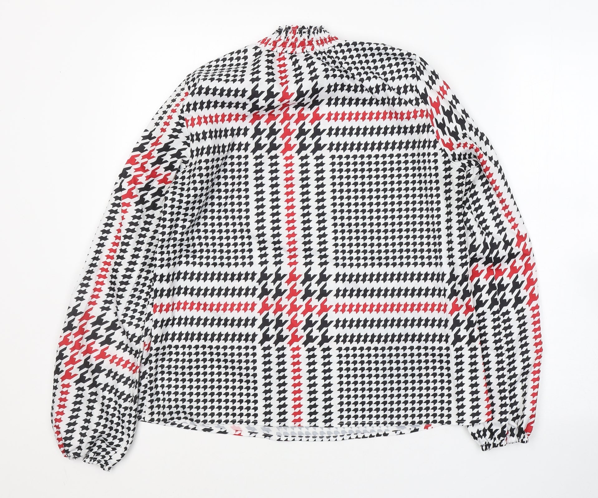 SheIn Womens White Geometric Polyester Basic Blouse Size M Round Neck