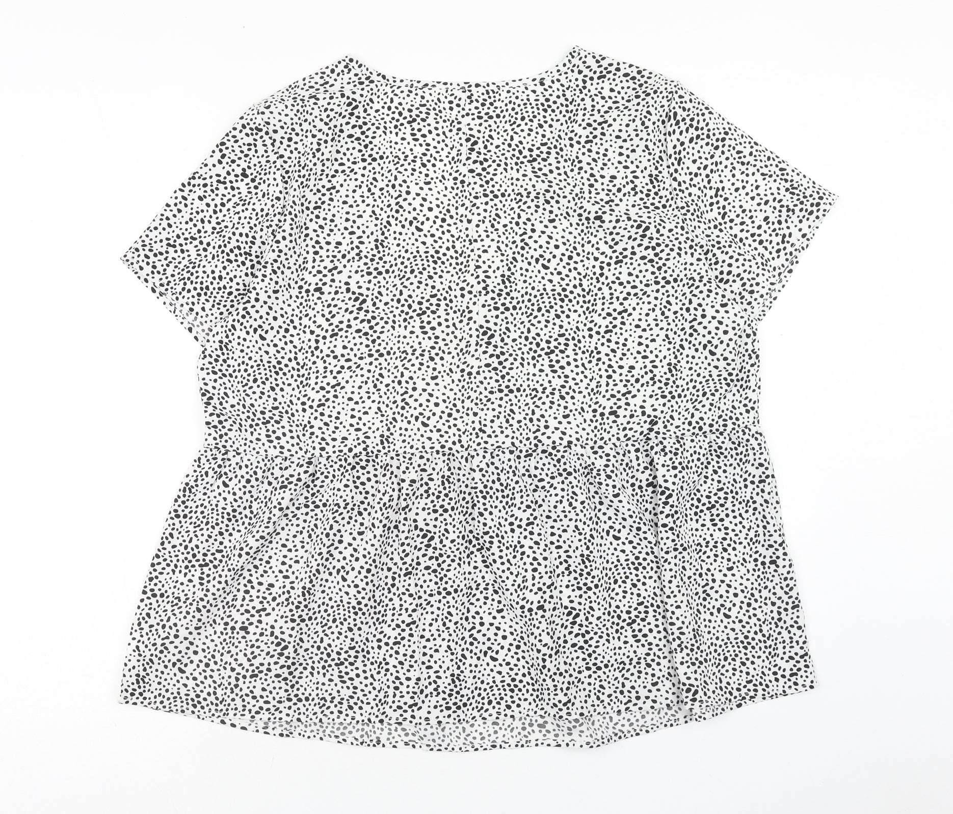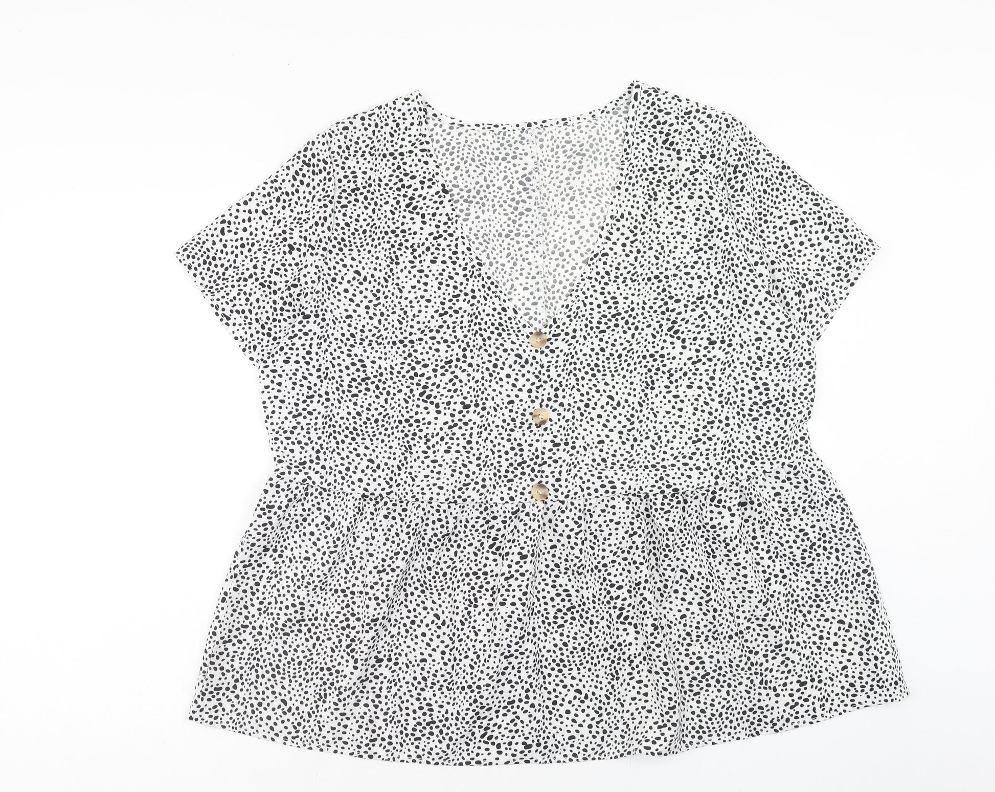 SheIn Womens White Geometric Polyester Basic Blouse Size XL V-Neck - Smock