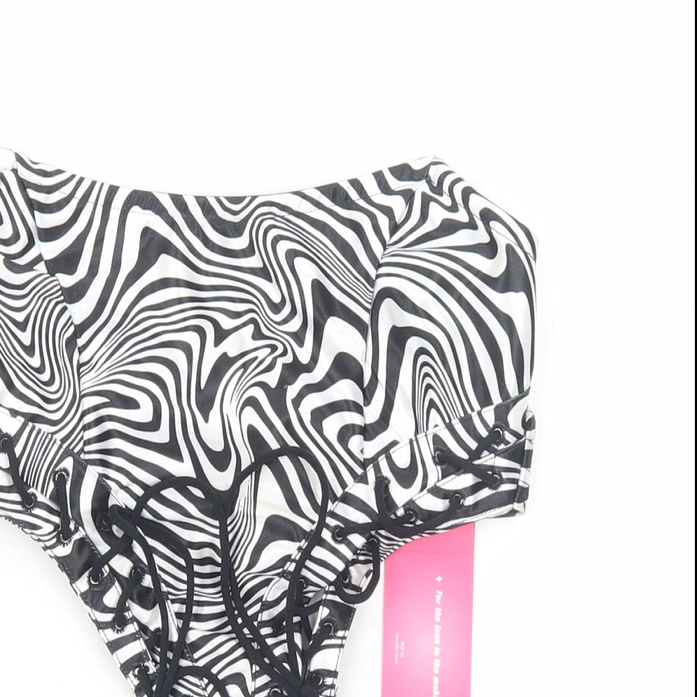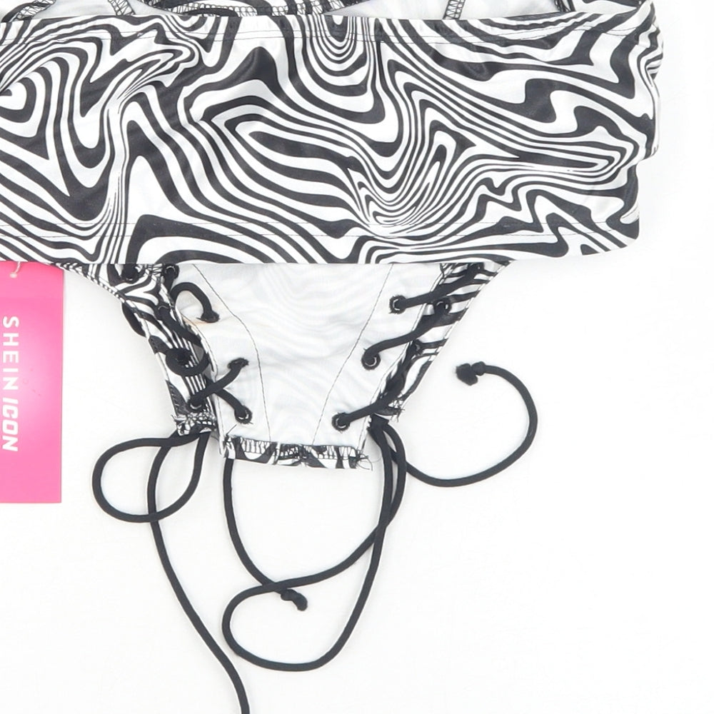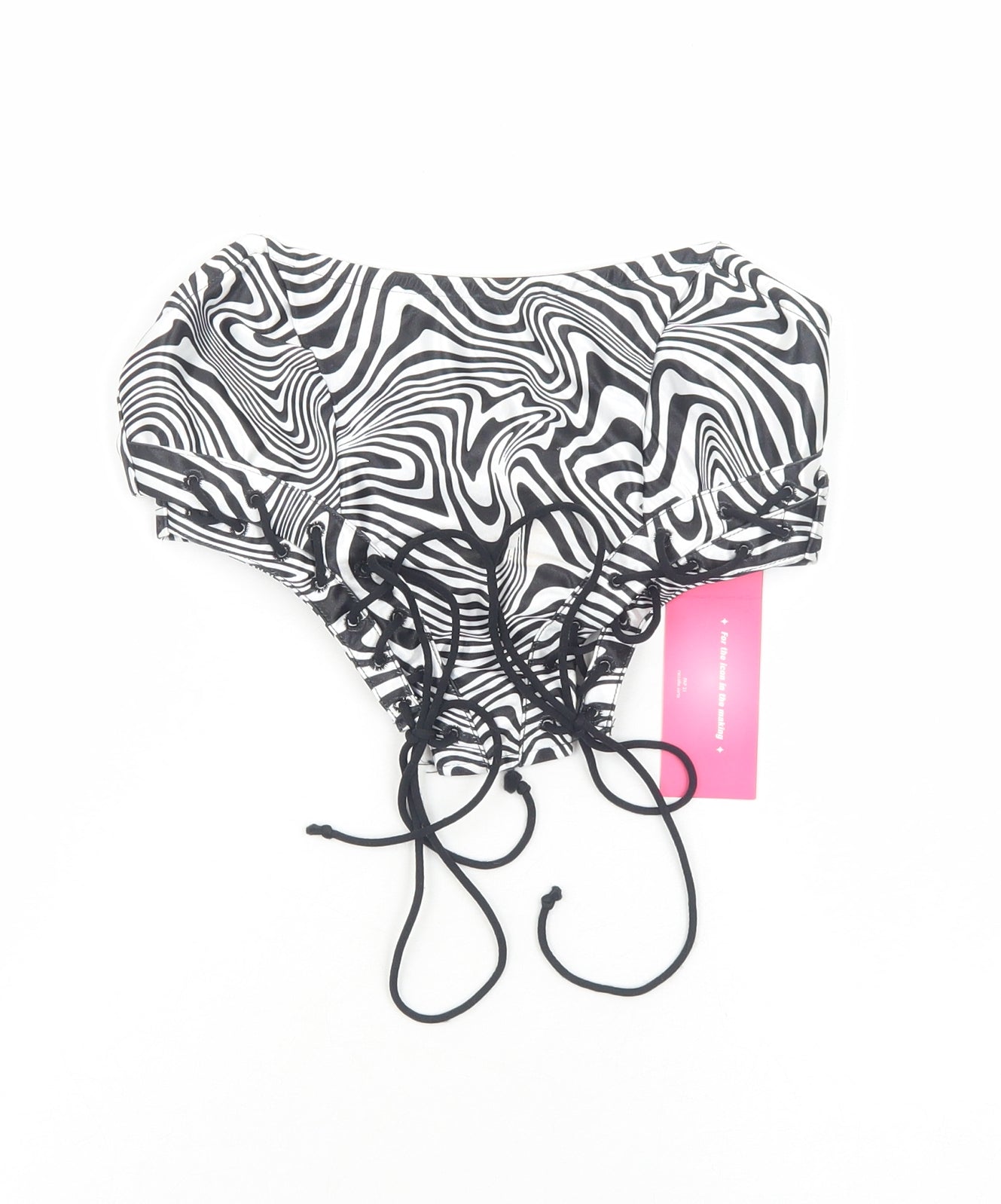 SheIn Womens White Geometric Polyester Cropped Blouse Size S Off the Shoulder - Corset