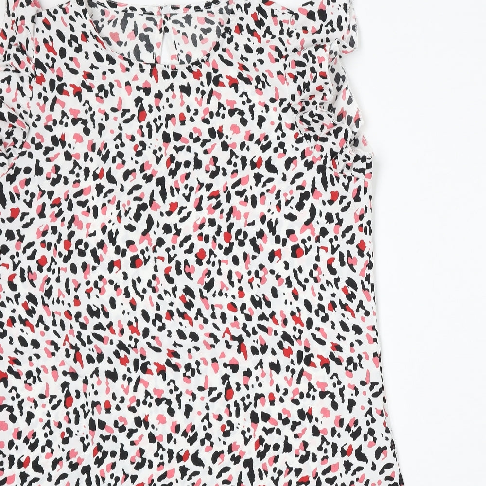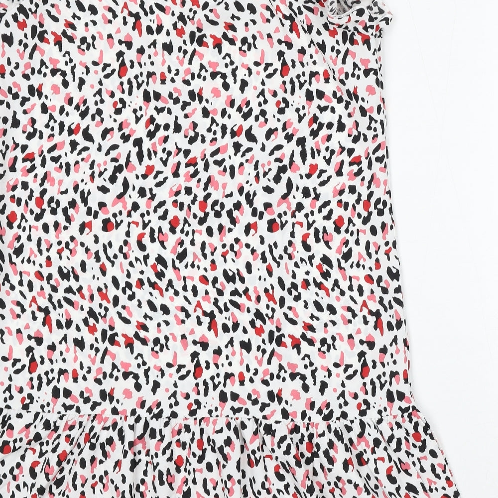 SheIn Womens White Geometric Polyester Skater Dress Size M Round Neck Button