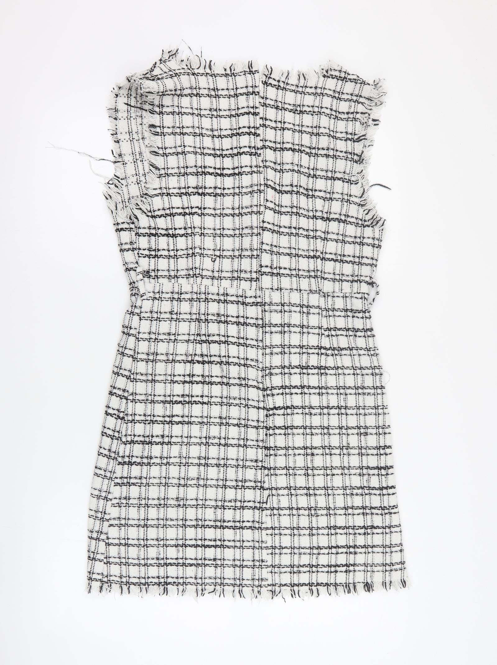 SheIn Womens White Plaid Polyester Mini Size M V-Neck Zip