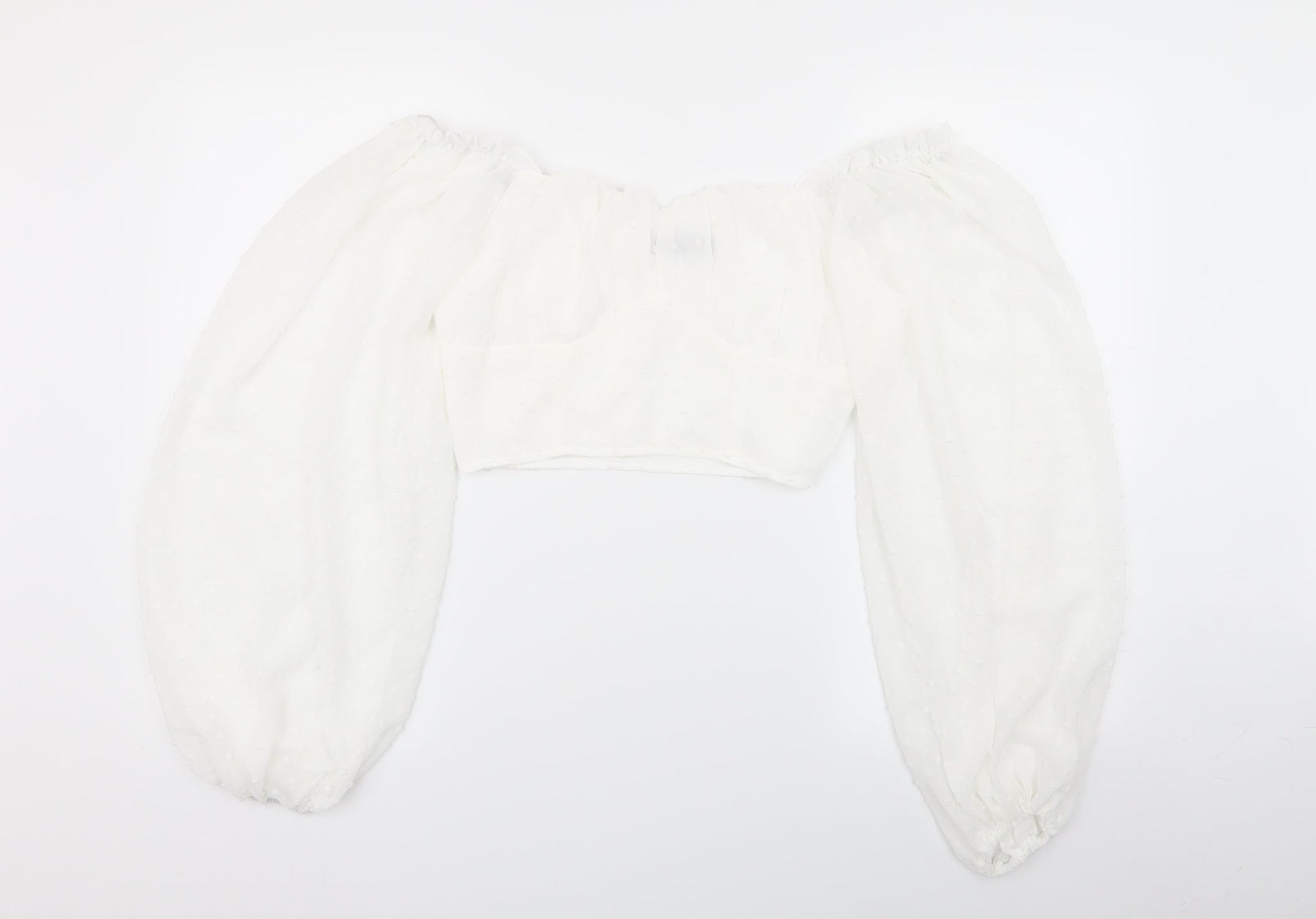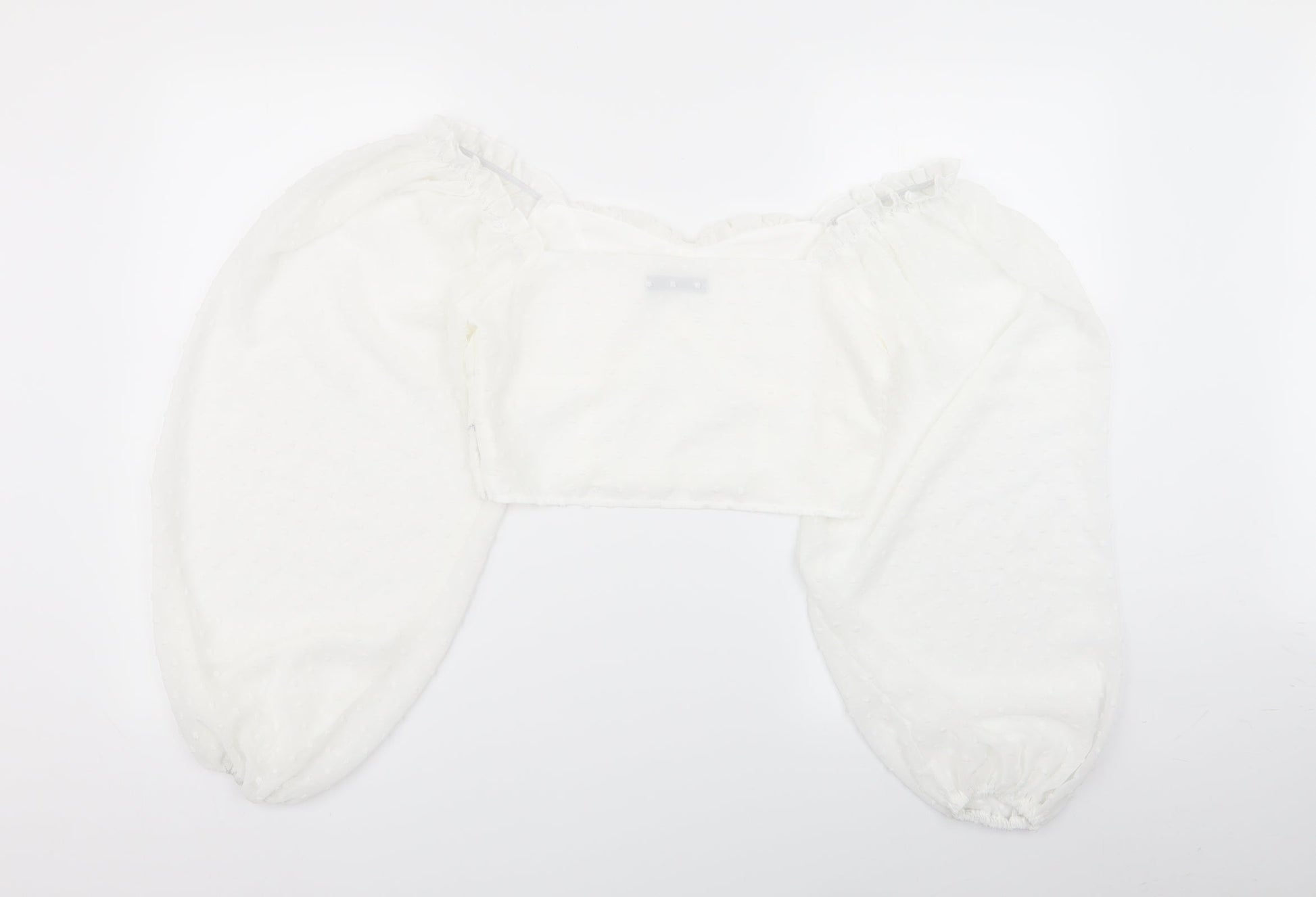 SheIn Womens White Polka Dot Basic Blouse Size S