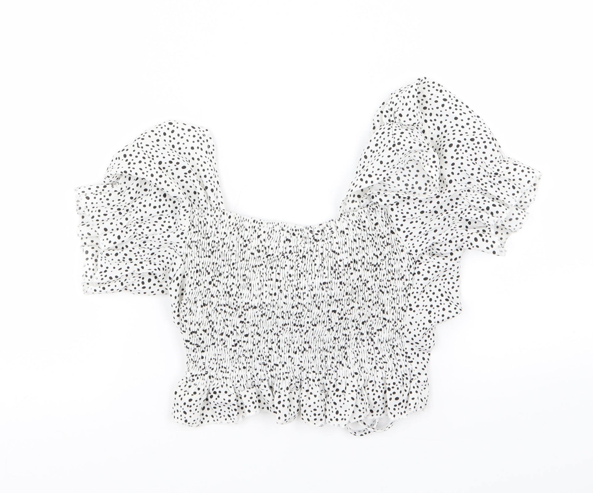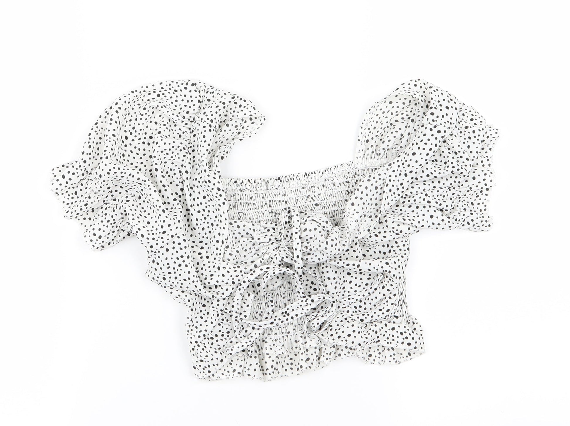 SheIn Womens White Polka Dot Basic T-Shirt Size S - crop