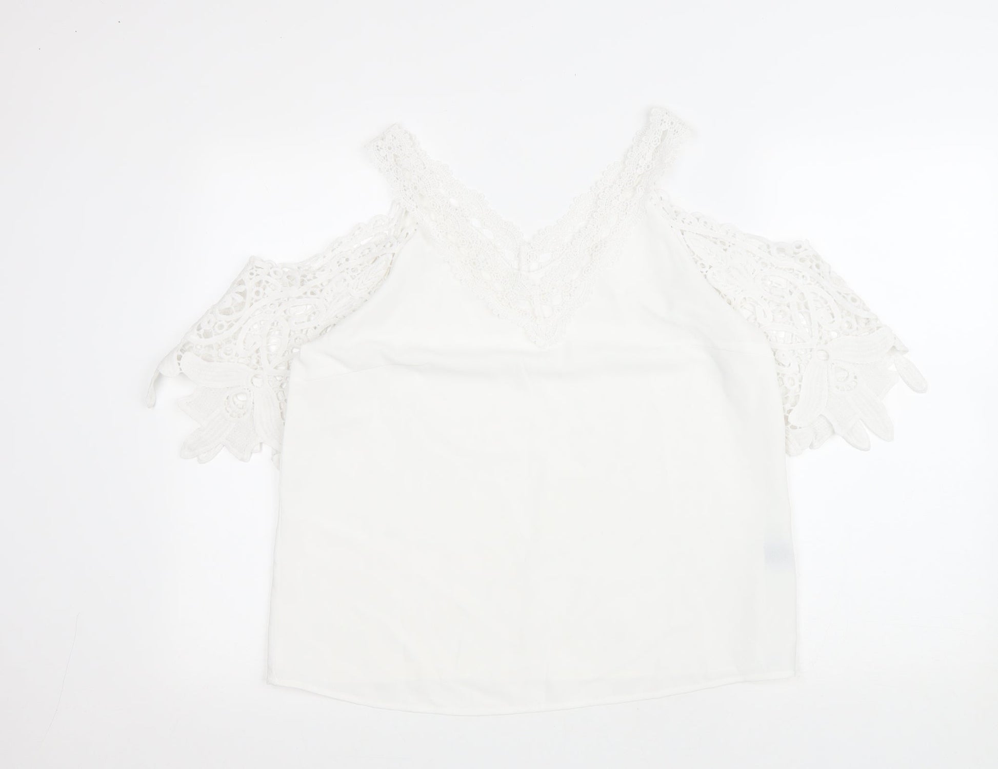 SheIn Womens White Polyester Basic Blouse Size M Collared - Lace trimming and cold shoulder