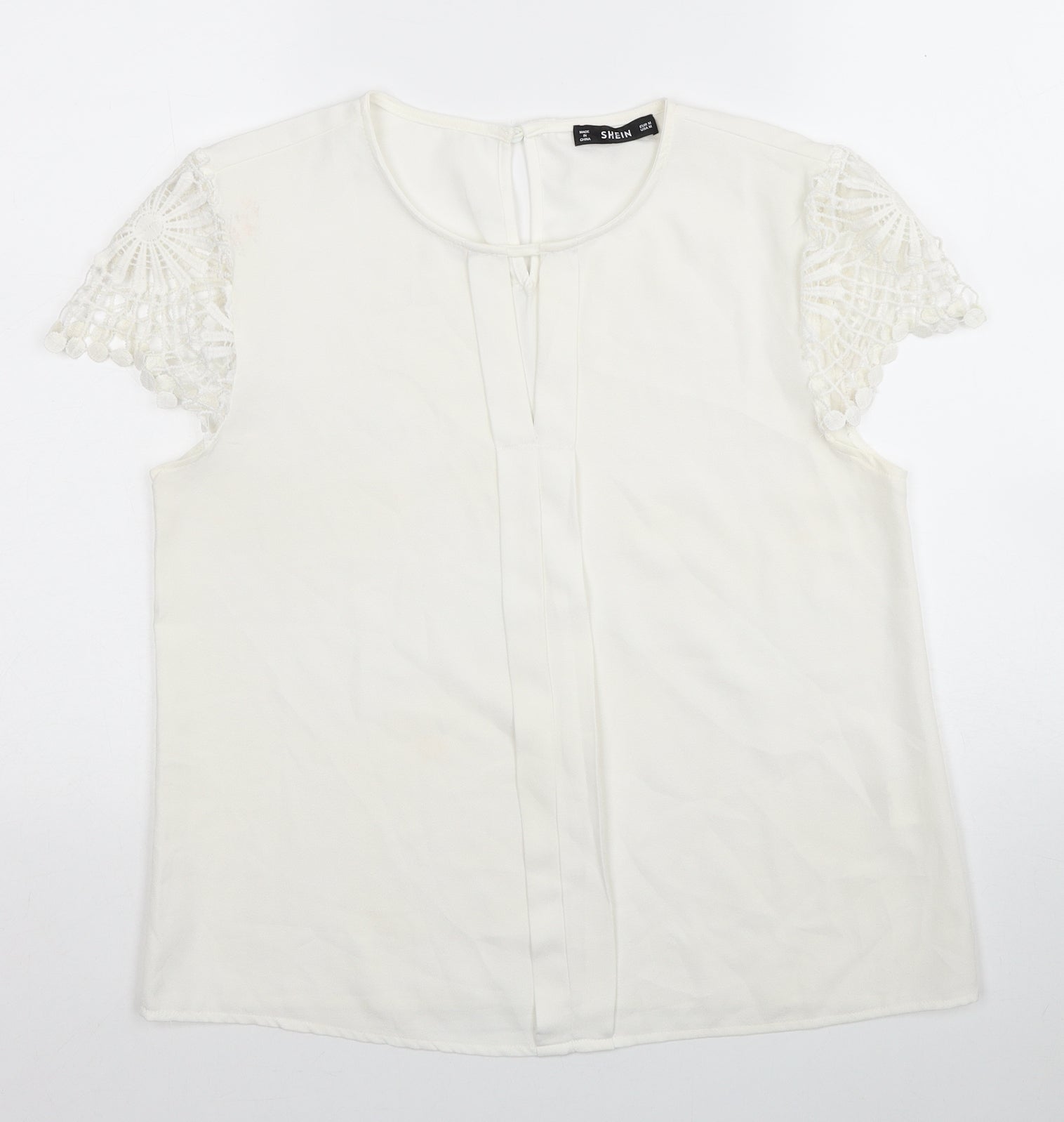 SheIn Womens White Polyester Basic Blouse Size M Scoop Neck - Lace Detail