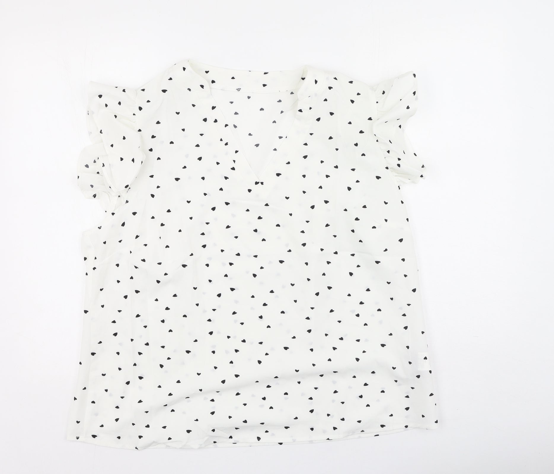SheIn Womens White Polyester Basic Blouse Size XL V-Neck