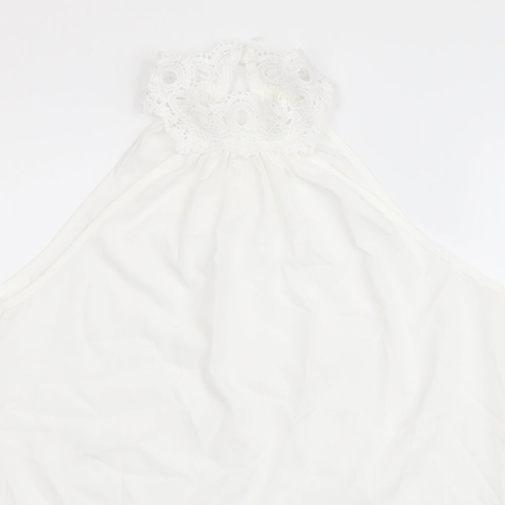 SheIn Womens White Polyester Basic Tank Size M Halter - Crochet Neckline