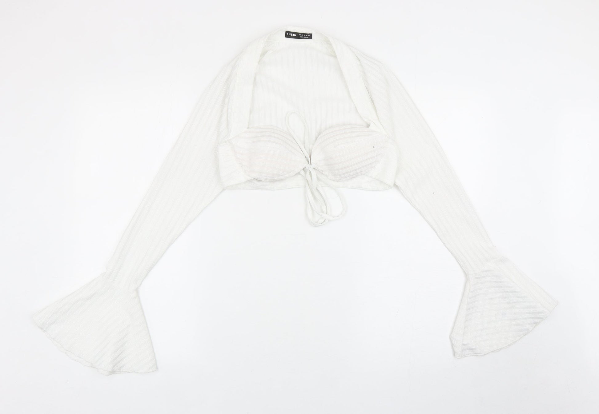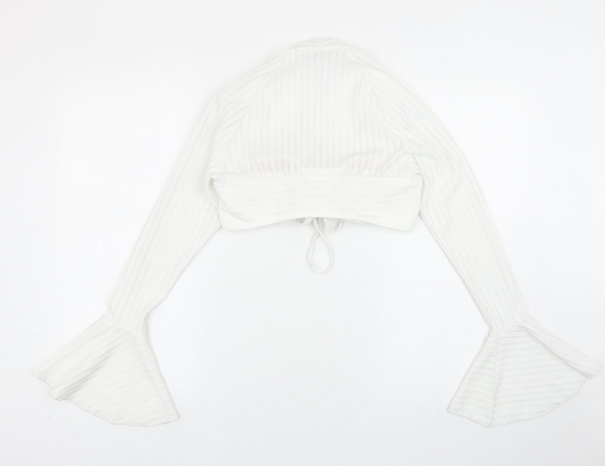 SheIn Womens White Polyester Cropped Blouse Size XS Sweetheart - Bell Sleeve