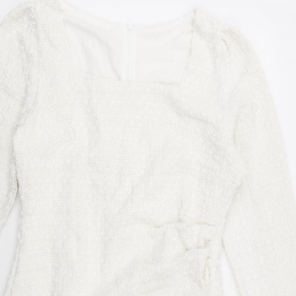 SheIn Womens White Polyester Pencil Dress Size XL Square Neck Zip