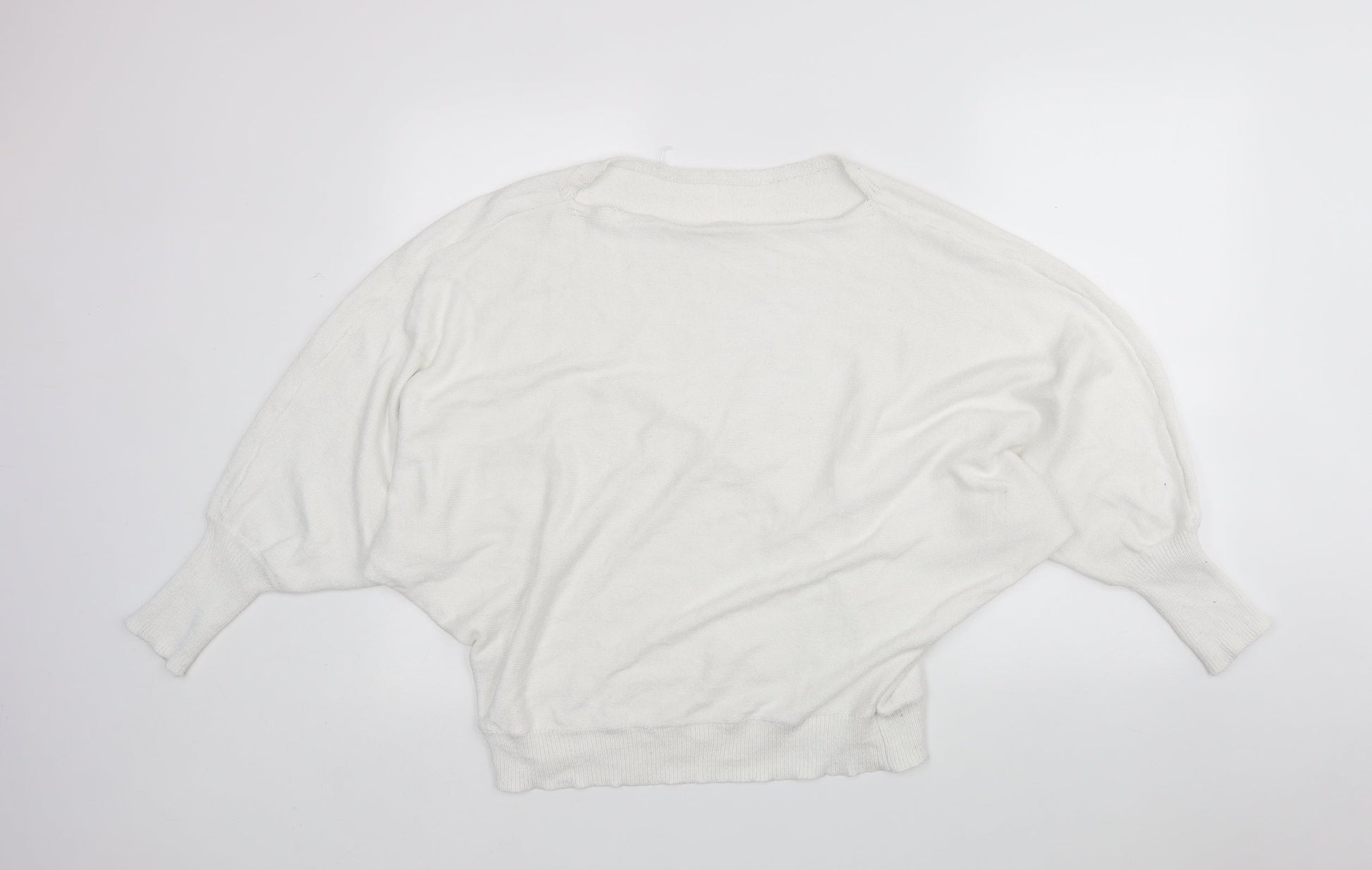 Shein Womens White Round Neck Viscose Pullover Jumper Size L