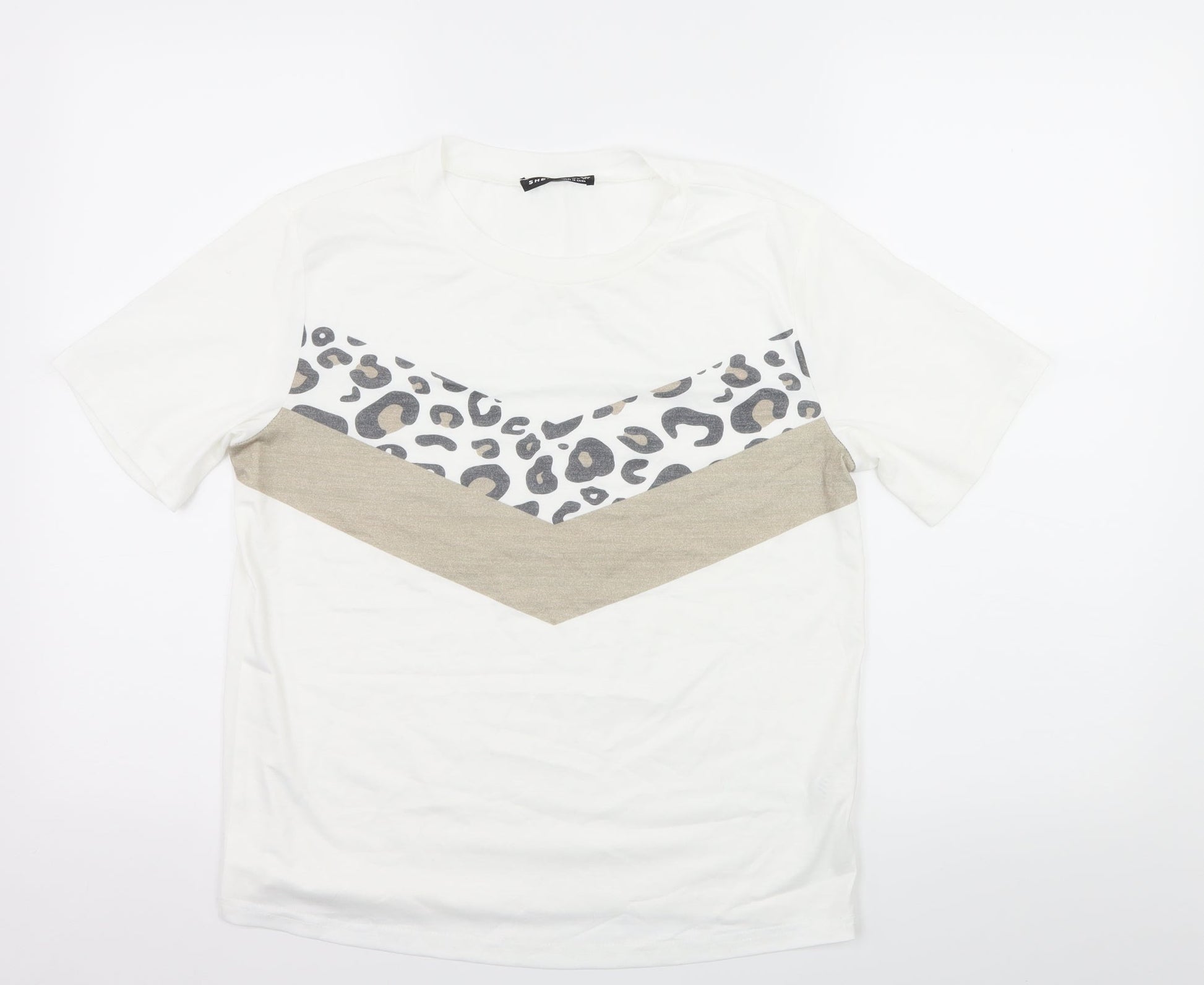 SheIn Womens White Striped Jersey Basic T-Shirt Size S