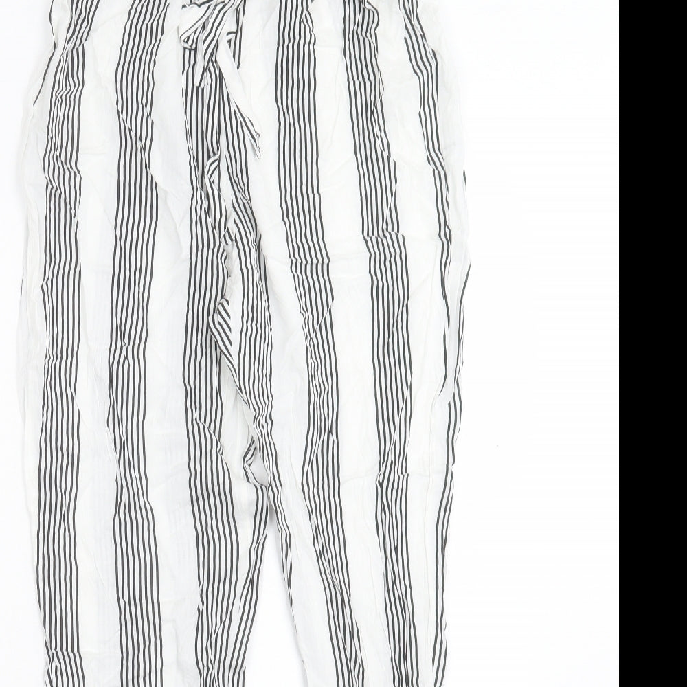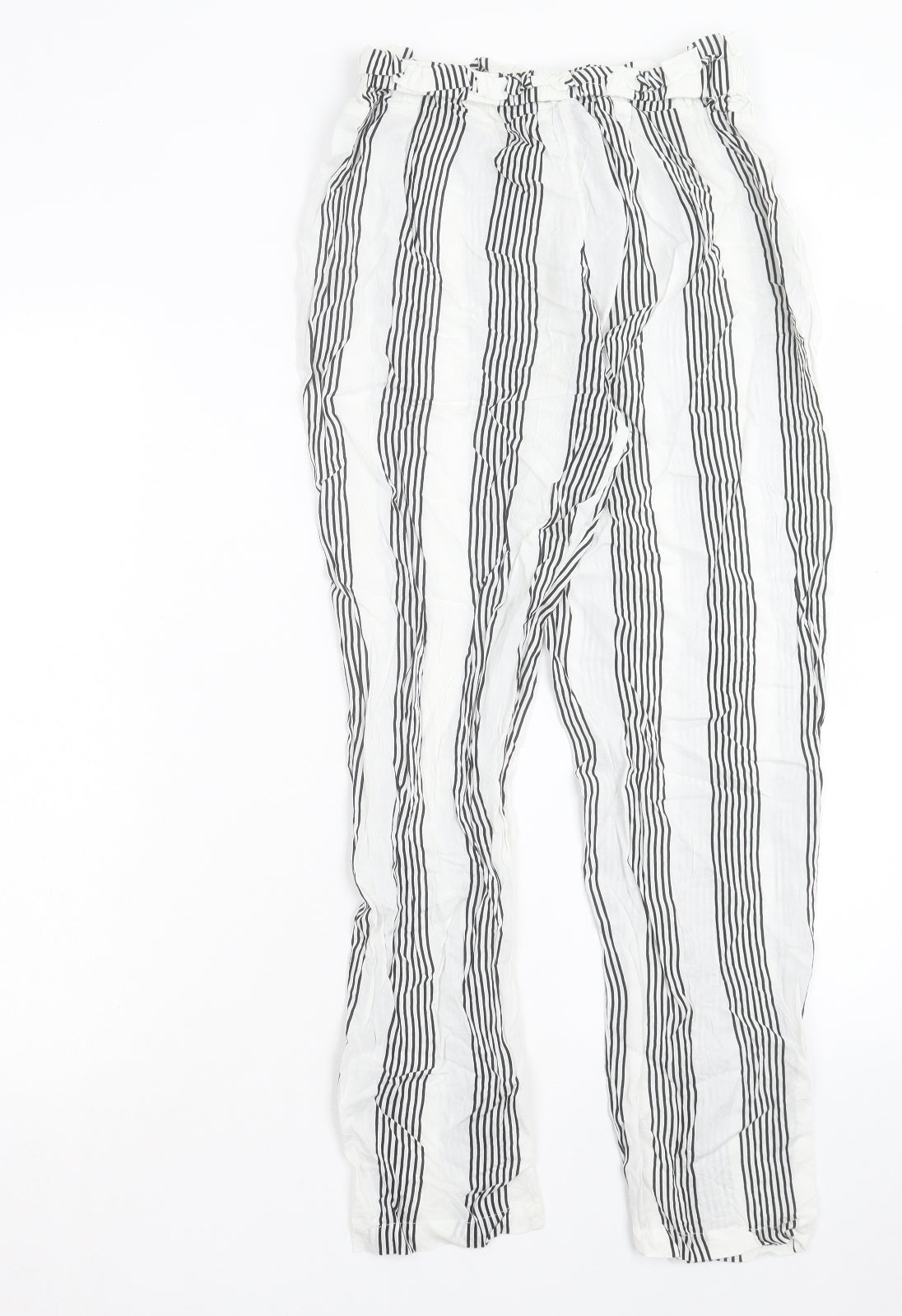 SheIn Womens White Striped Viscose Trousers Size S L26 in Regular Tie
