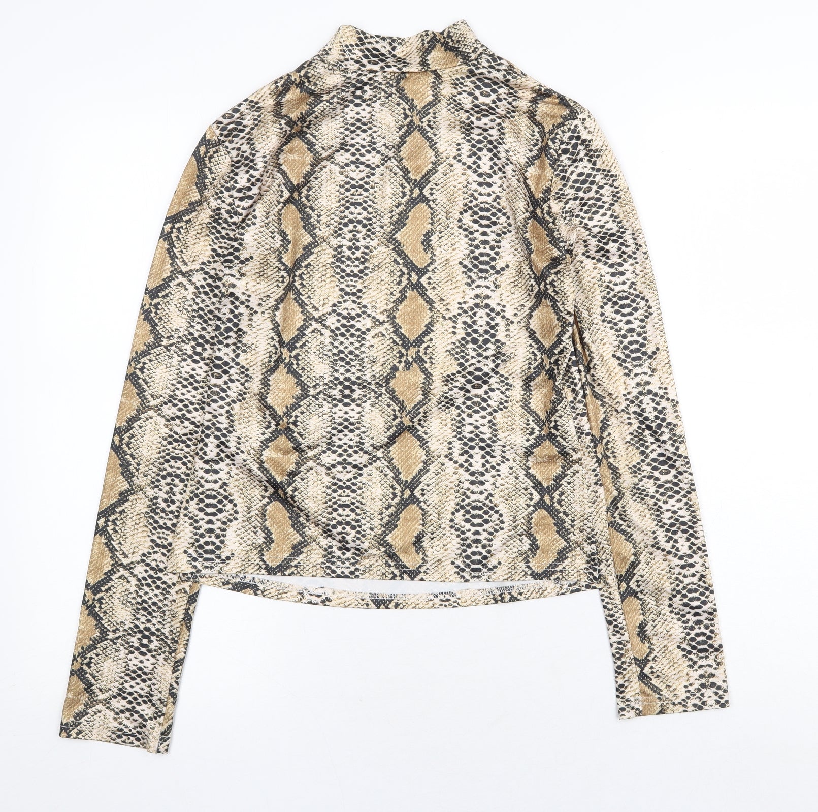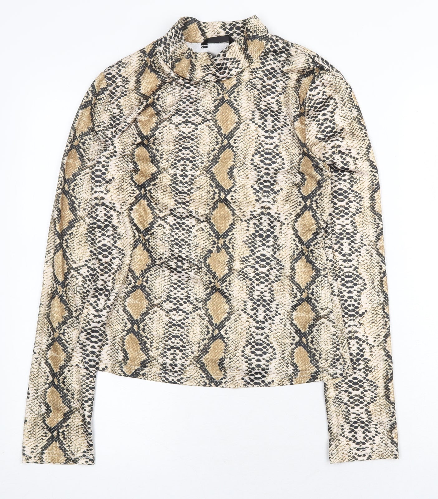 SheIn Womens Yellow Animal Print Polyester Basic T-Shirt Size M High Neck - Snake print