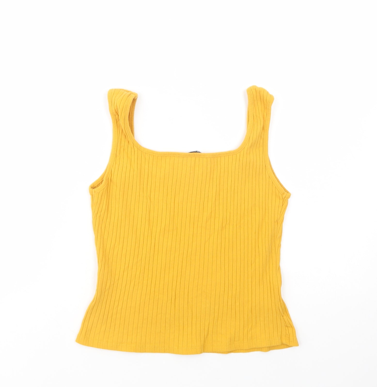 SheIn Womens Yellow Cotton Basic Tank Size L Square Neck