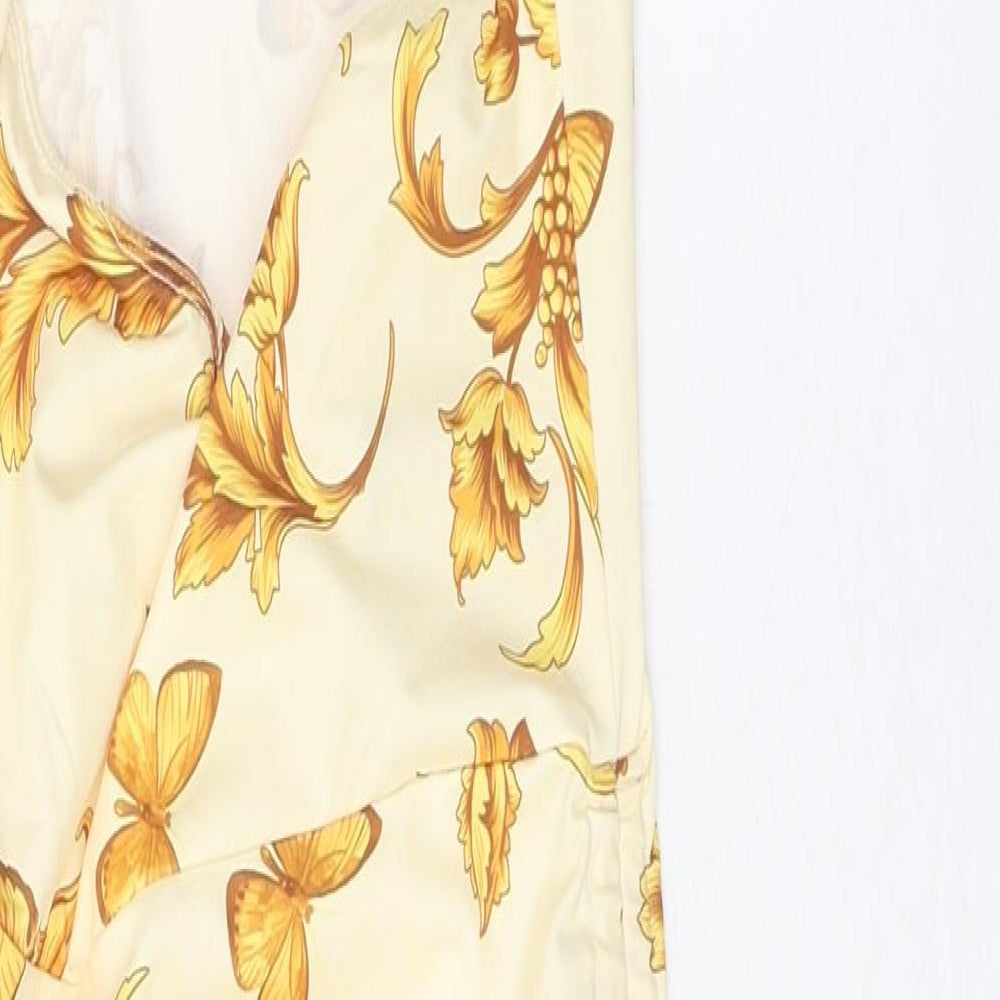 SheIn Womens Yellow Geometric Polyester Bodycon Size M Halter Tie