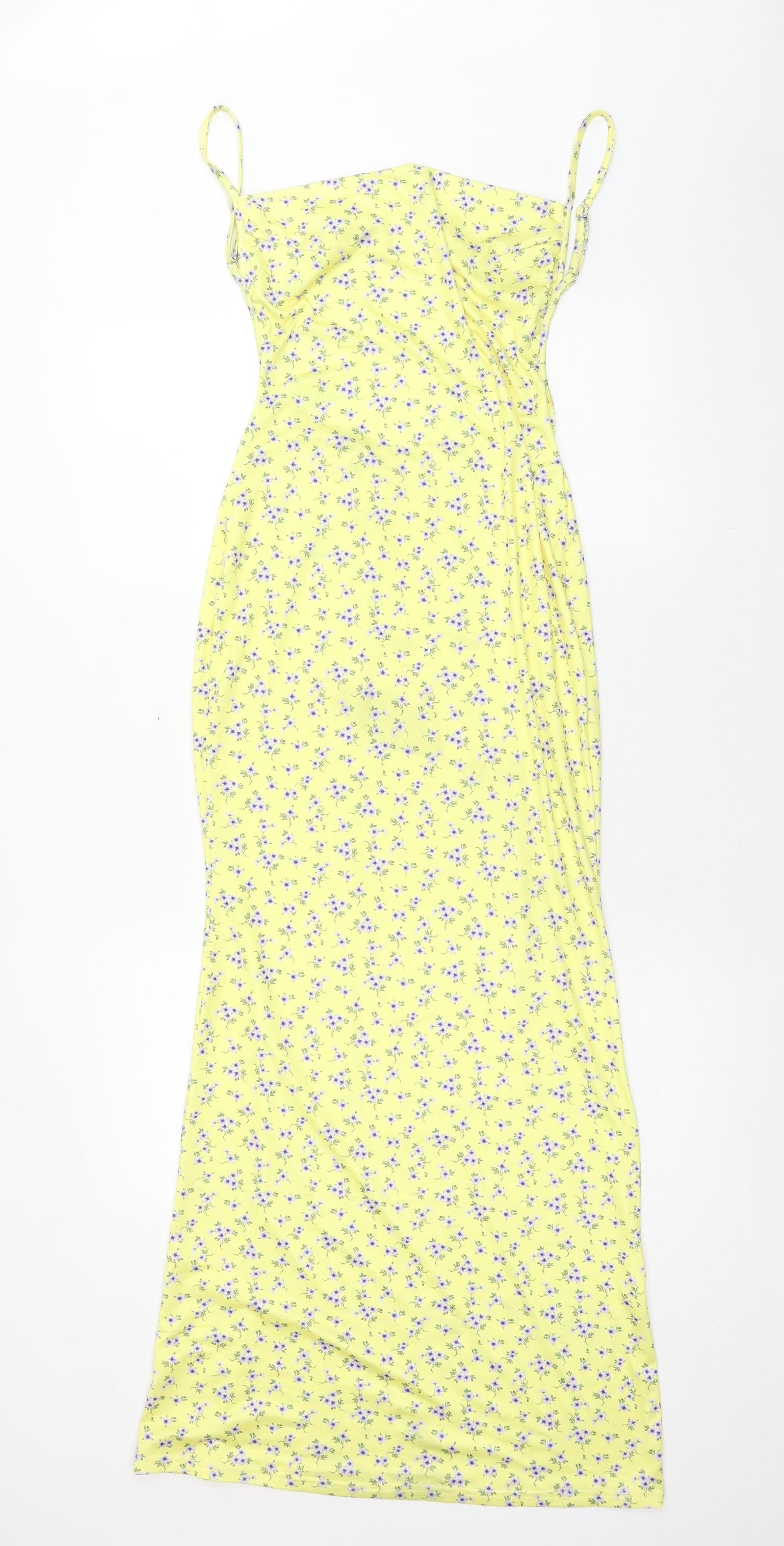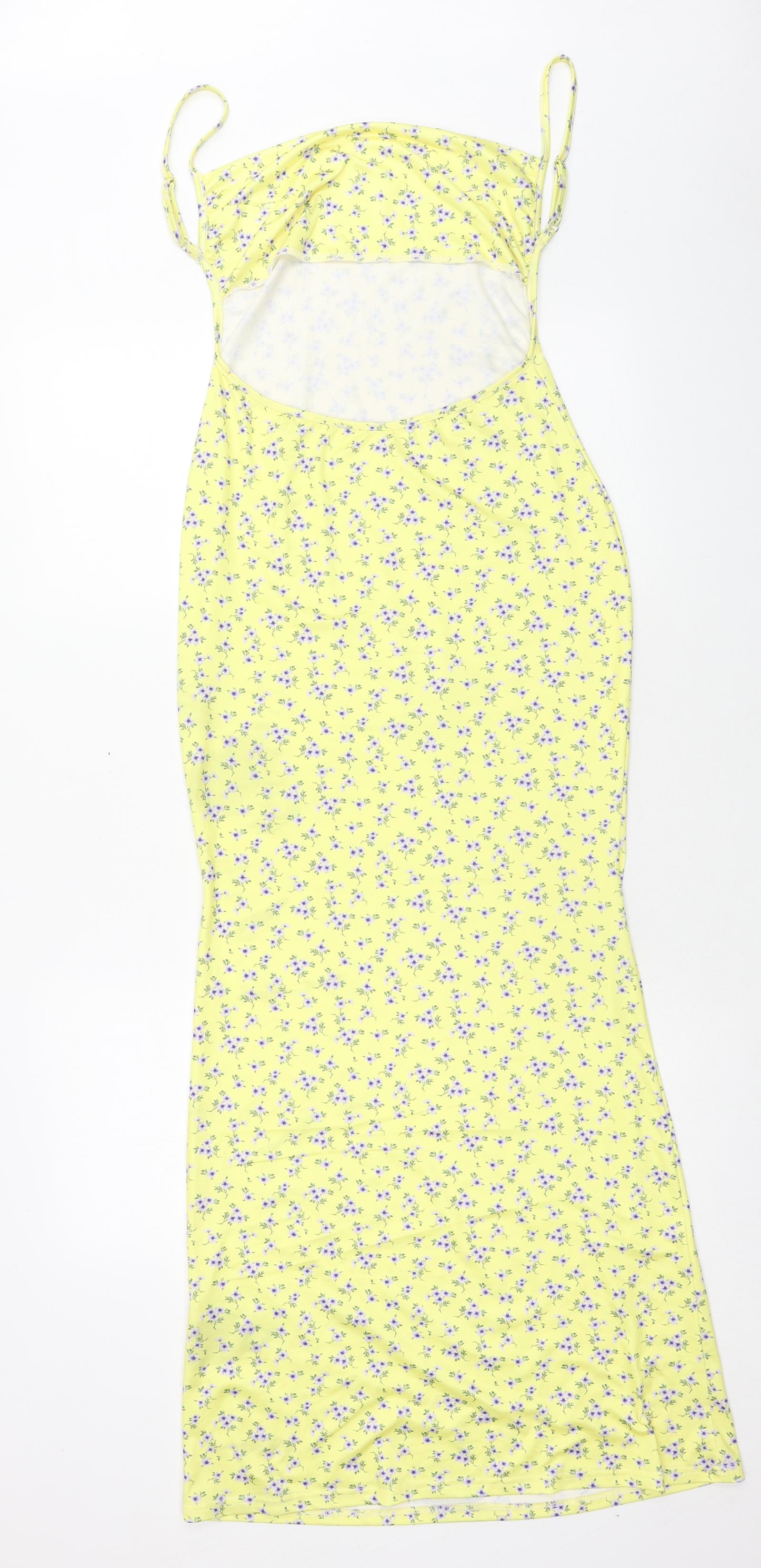 SheIn Womens Yellow Geometric Polyester Maxi Size L Off the Shoulder Pullover