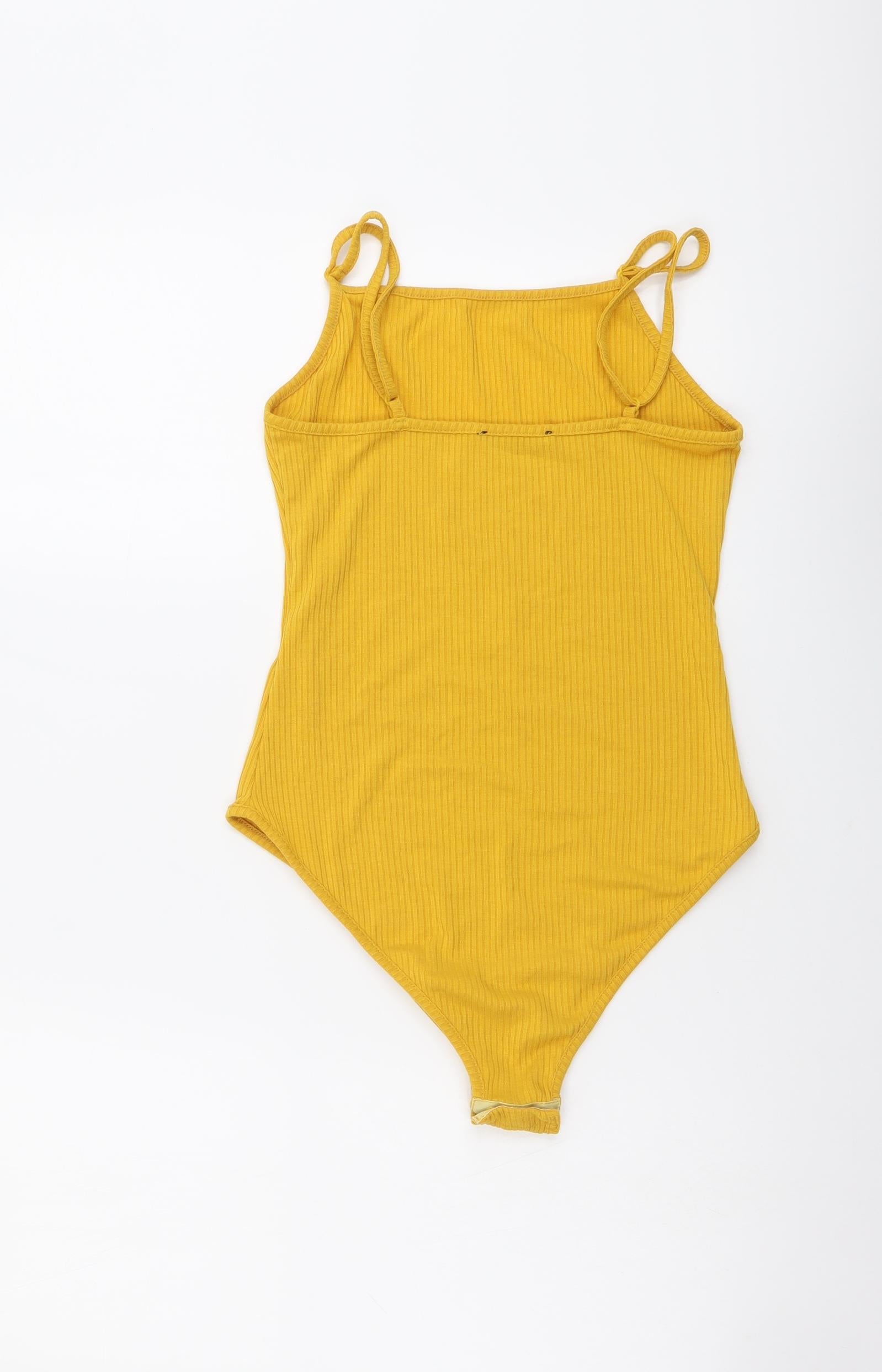 SheIn Womens Yellow Polyester Bodysuit One-Piece Size S Snap