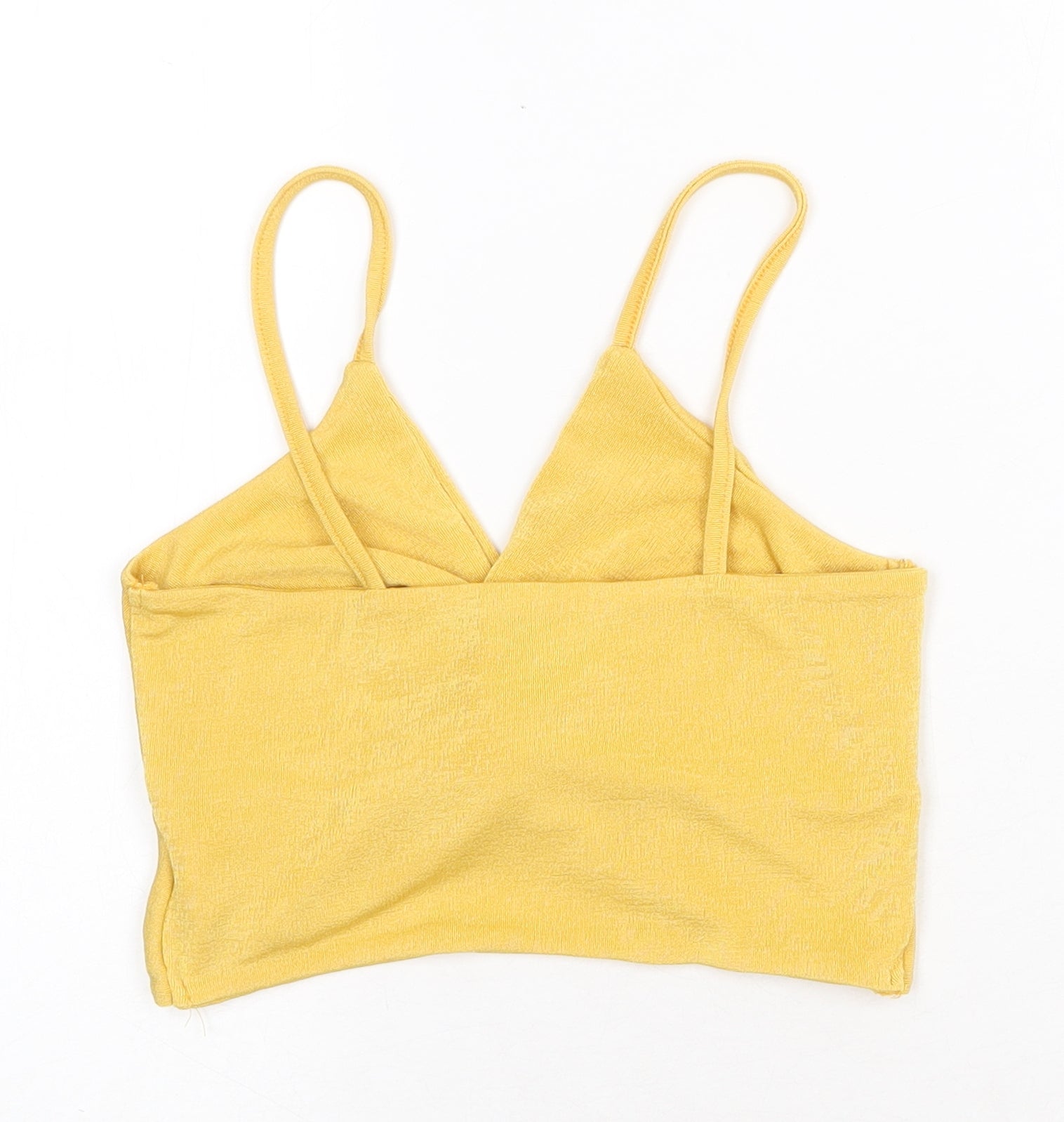 SheIn Womens Yellow Polyester Cropped Tank Size S V-Neck - Knot Detail