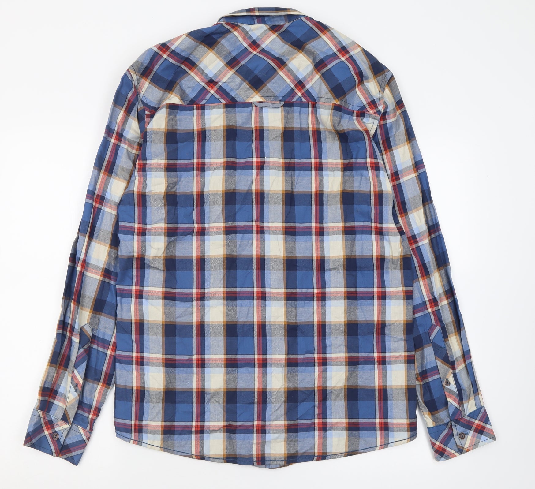 Shine Original Mens Blue Check Cotton Button-Up Size L Collared Button
