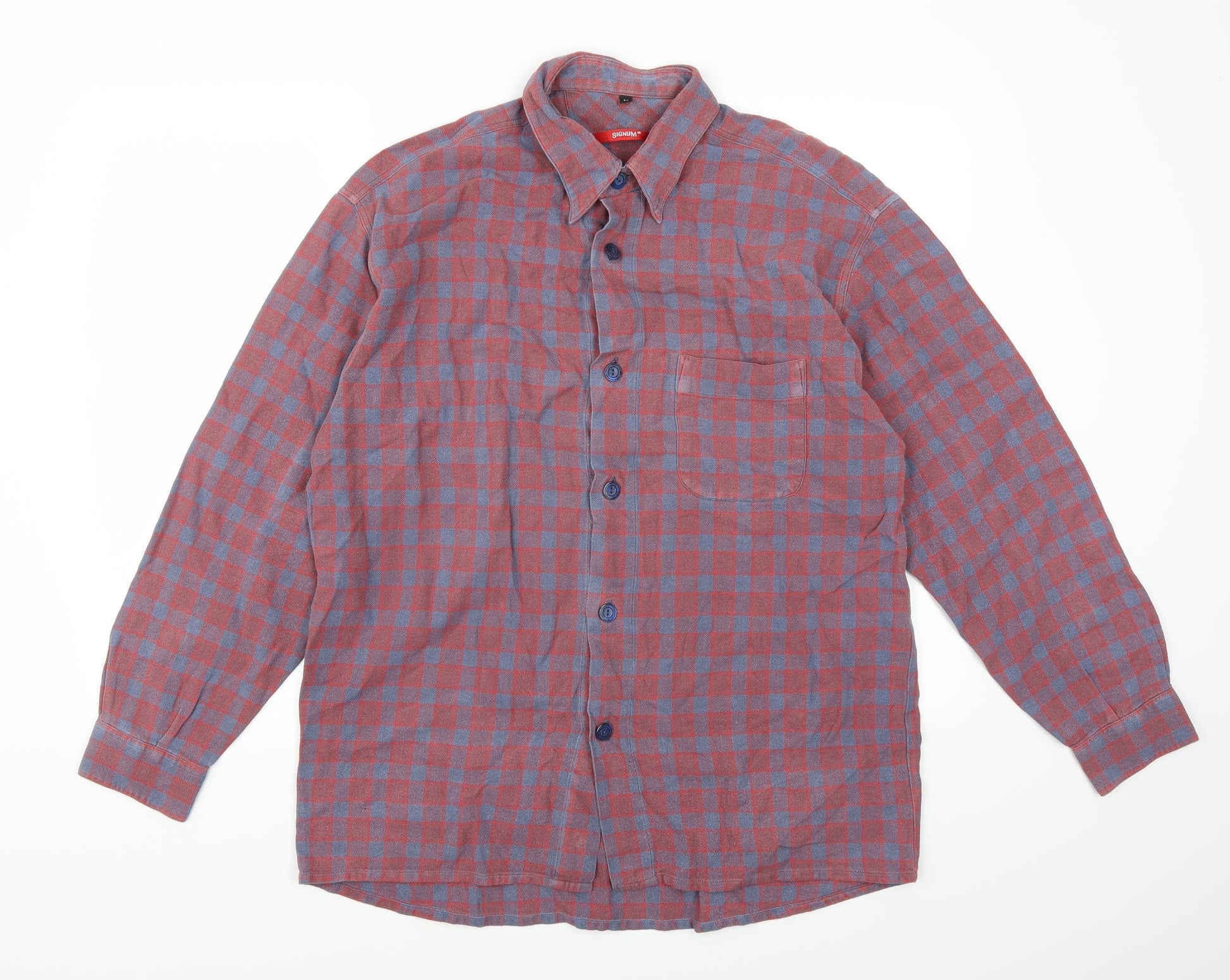 Signum Mens Red Check Button-Up Size M