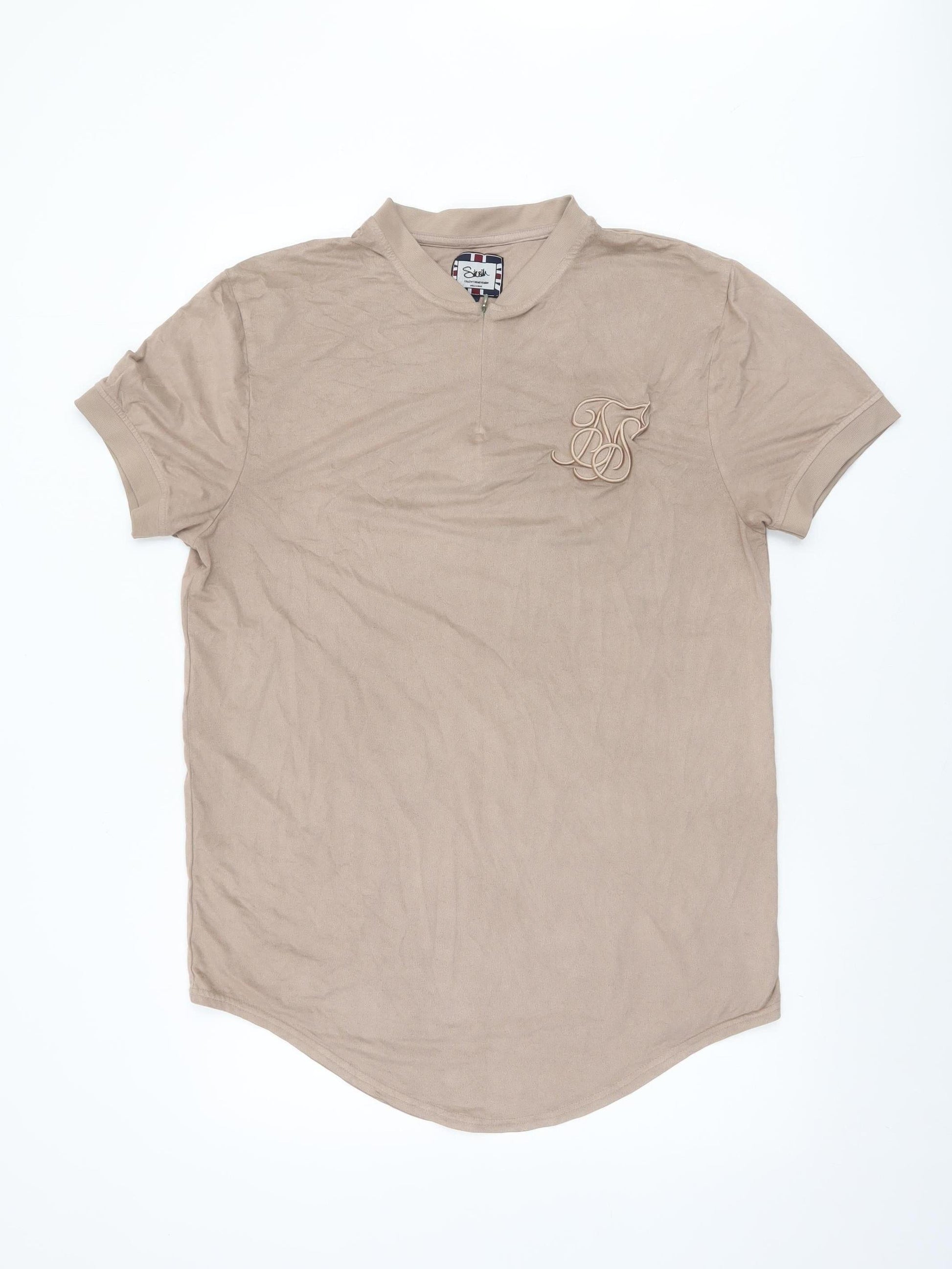 SikSilk Men’s Beige High Neck Slim Fit 1/2 Zip T-Shirt Size L