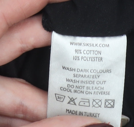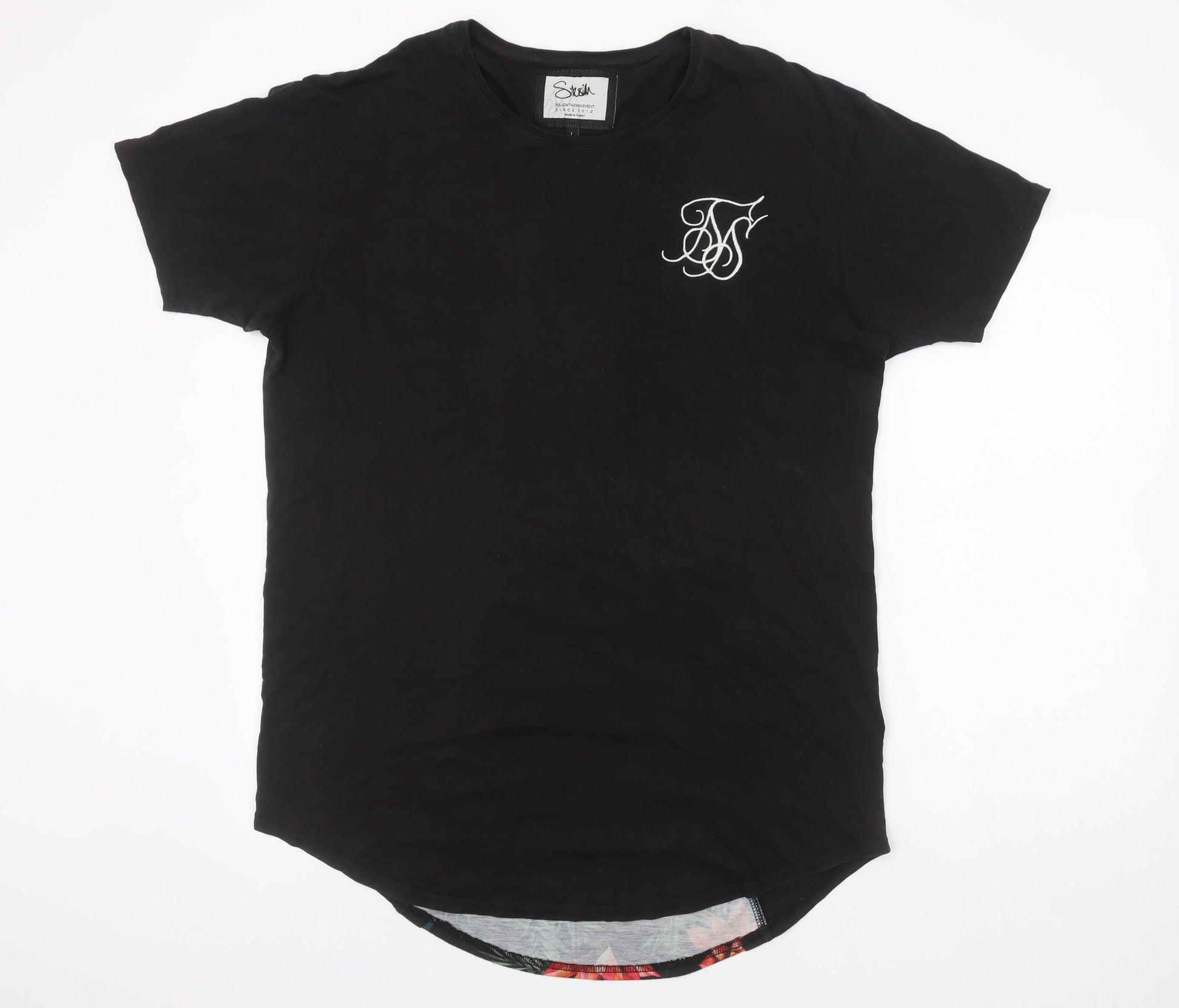 SikSilk Men's Black Floral Back Panel Crew Neck Short Sleeve T-Shirt L