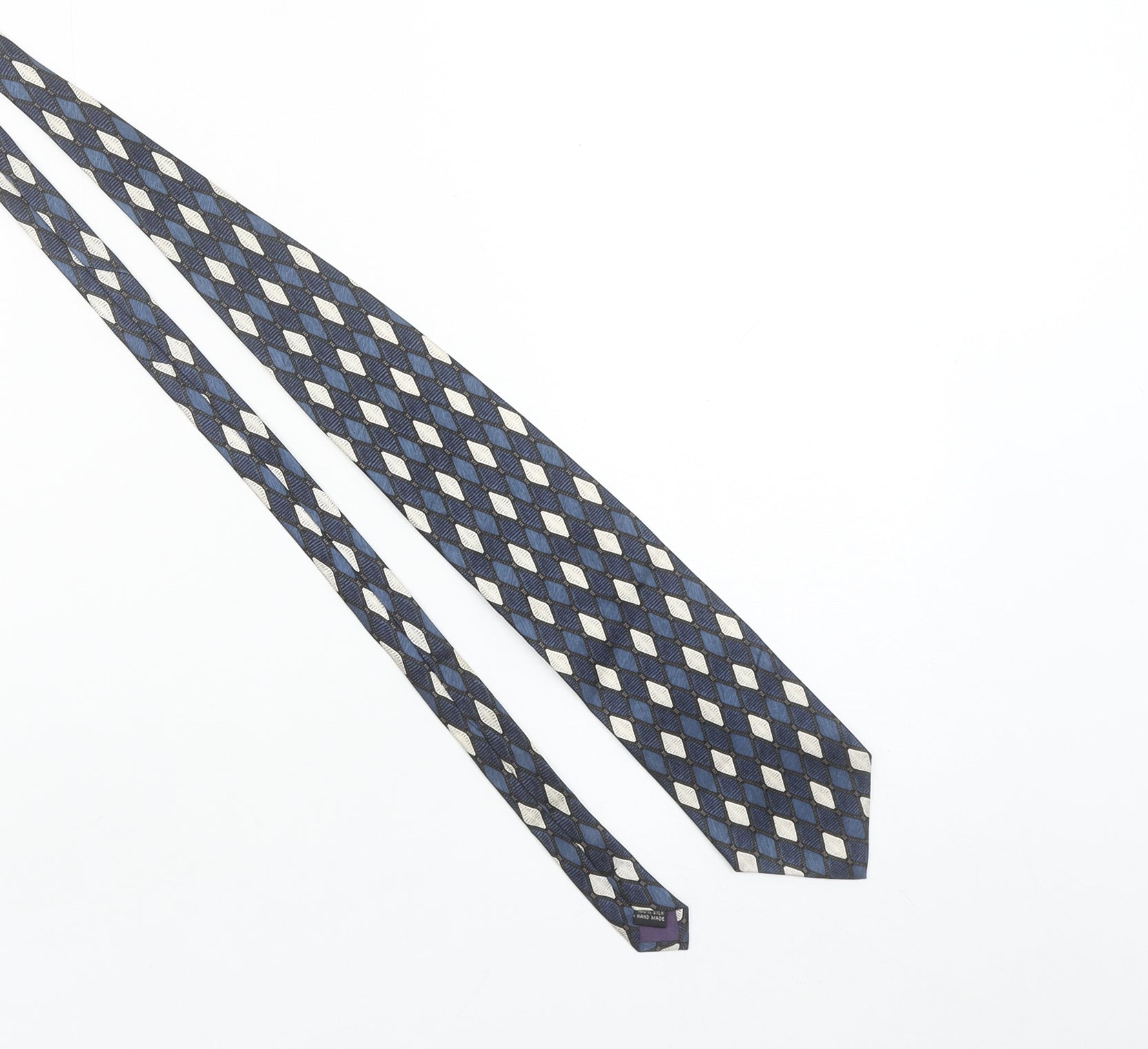 Silkworm London Men's Blue Geometric 100% Silk Handmade Tie