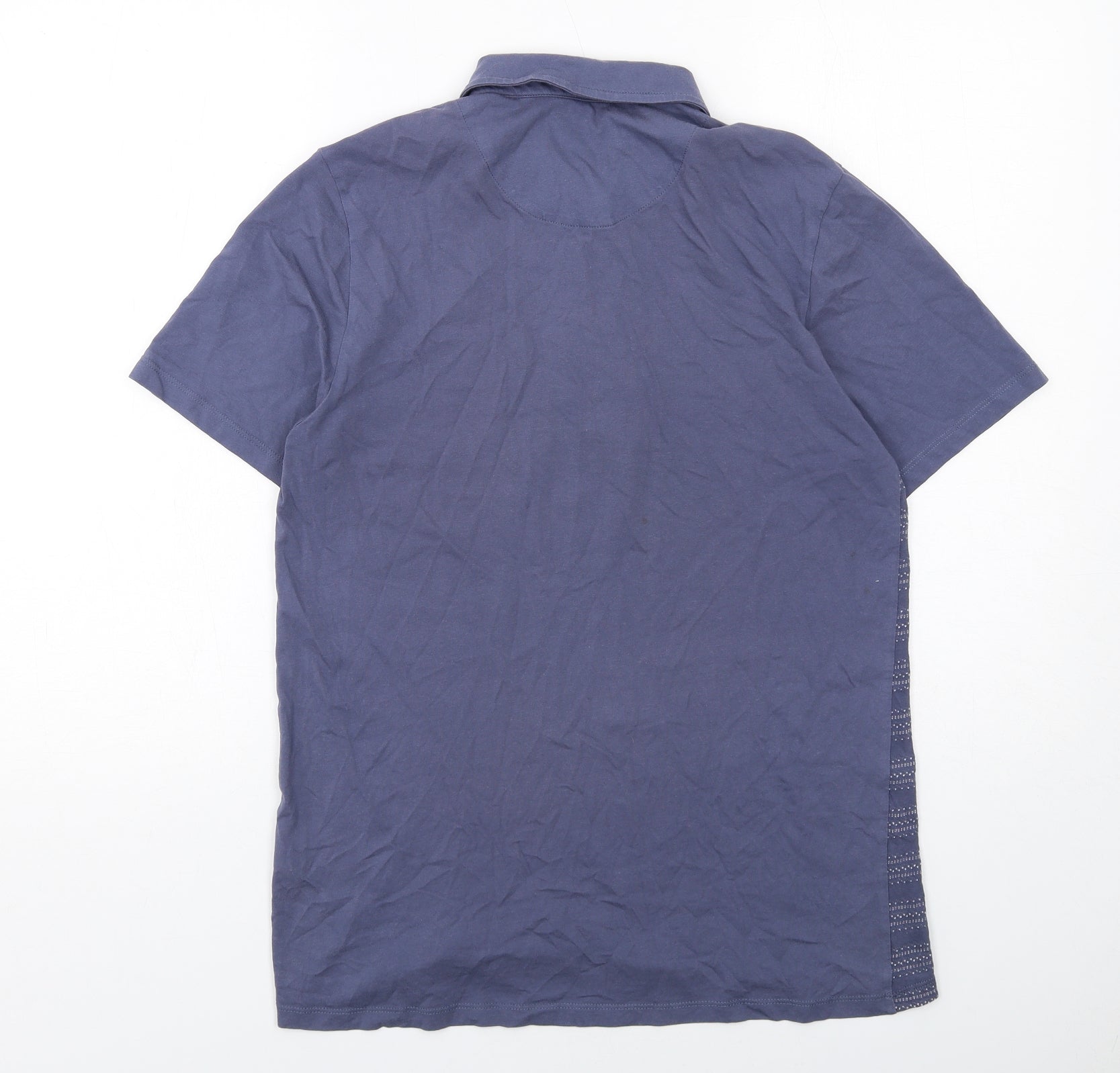 Silver Eight Mens Blue Striped Cotton Polo Size S Collared Button