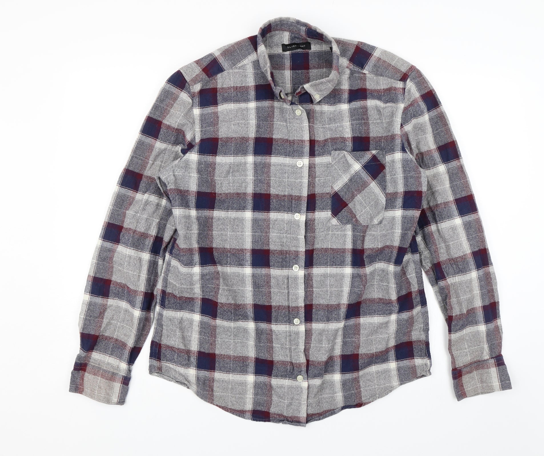 Silver Eight Mens Grey Plaid Button-Up Size L