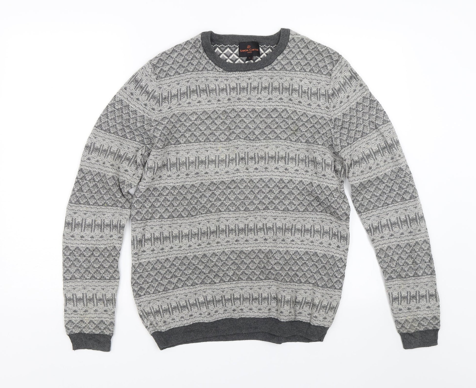 Simon Carter Mens Grey Argyle/Diamond Knit Pullover Jumper Size S