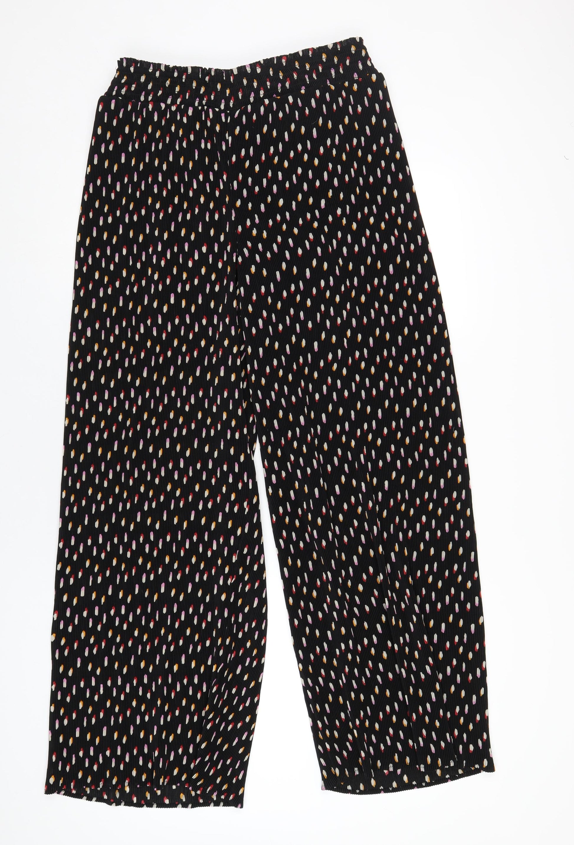 Simply Be Womens Black Geometric Polyester Trousers Size 14 L32 in Regular