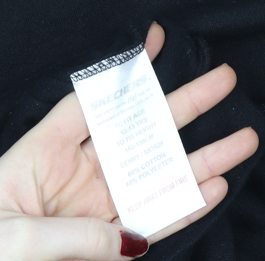 Skechers Girls Black Hoodie 12-13 Years Pullover Hooded Sweatshirt