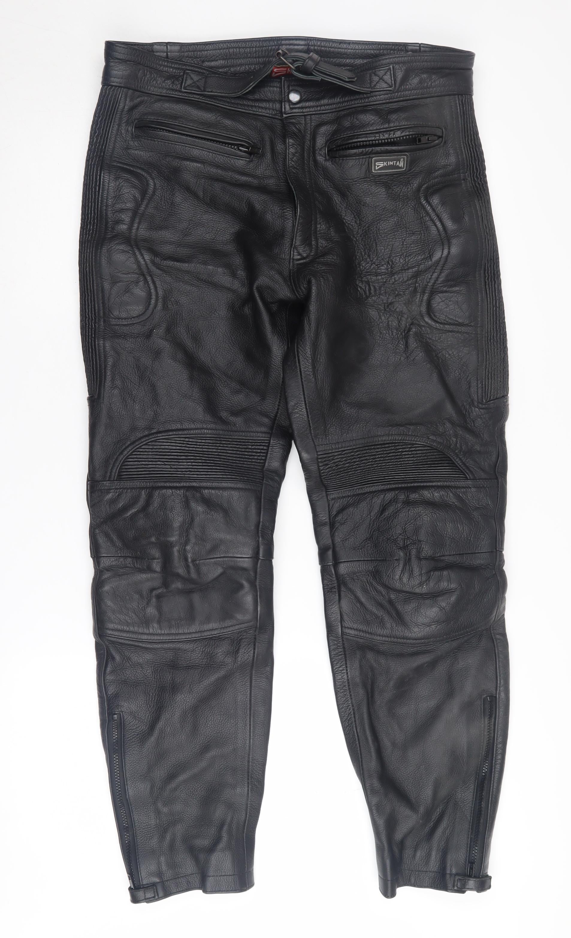 Skintan Men's Black Leather Motorcycle Trousers 34