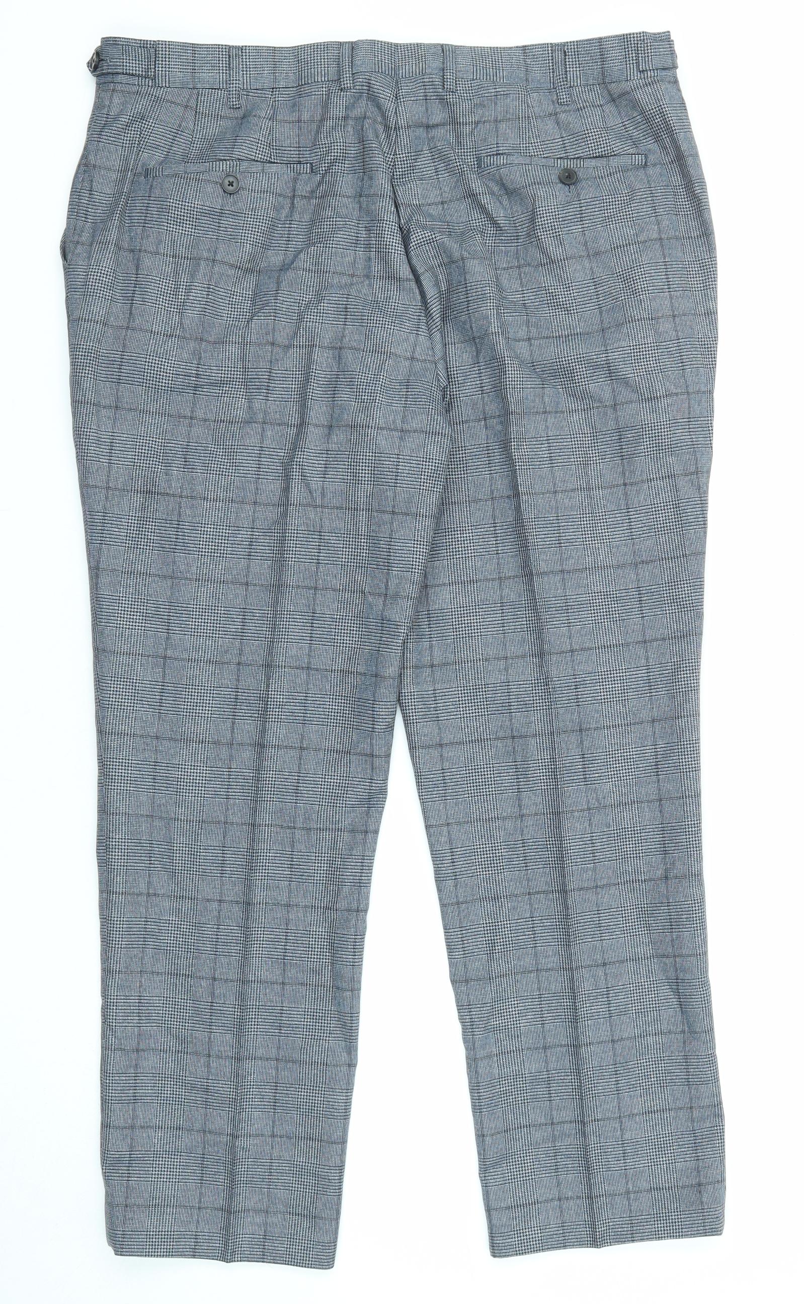 Skopes Mens Blue Check Polyester Trousers Size 38 in L28 in Regular Zip