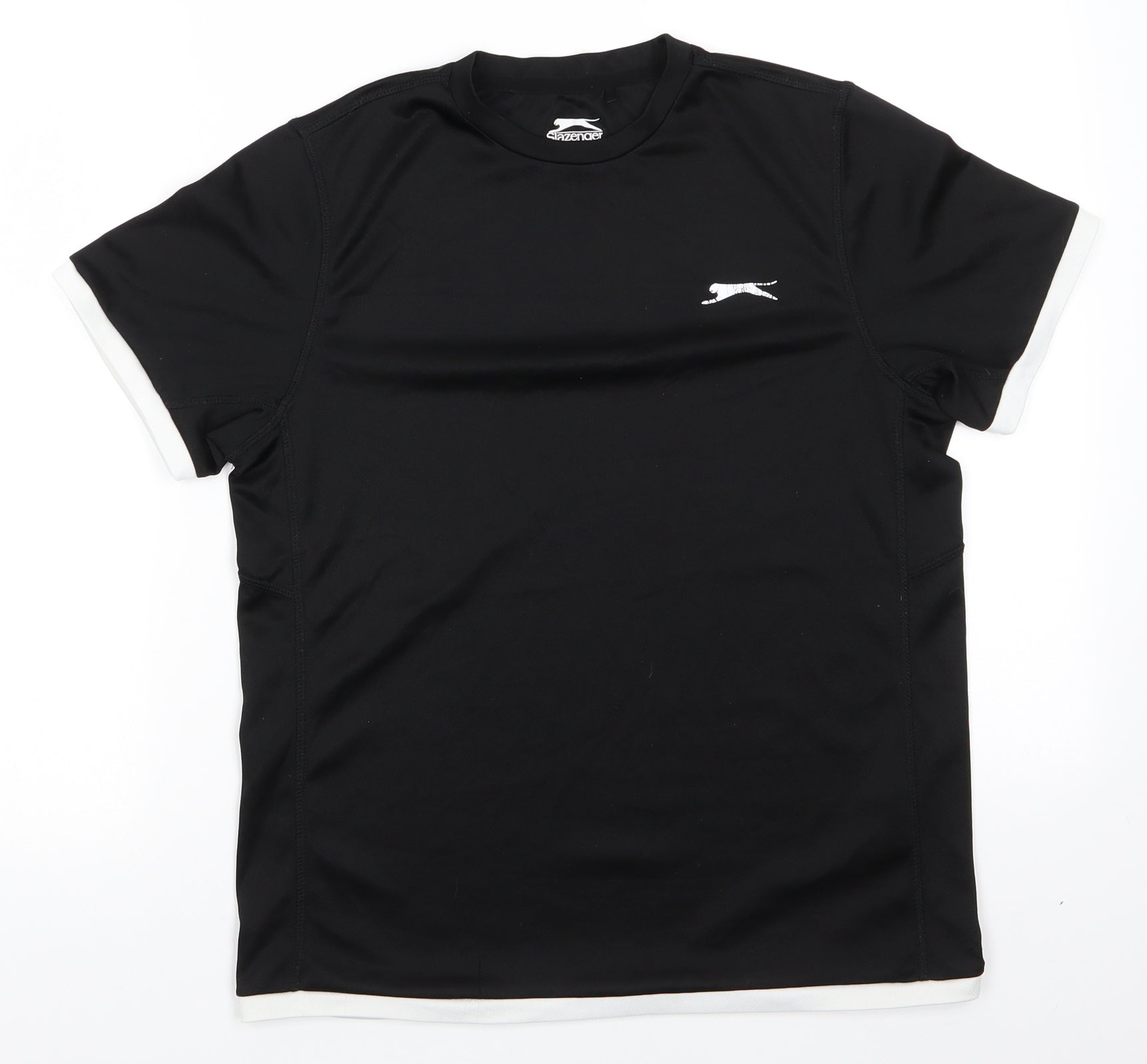 Slazenger Mens Black Animal Print Polyester Basic T-Shirt Size XS Round Neck Pullover - Slazenger CoolPass White trim arms & hemline