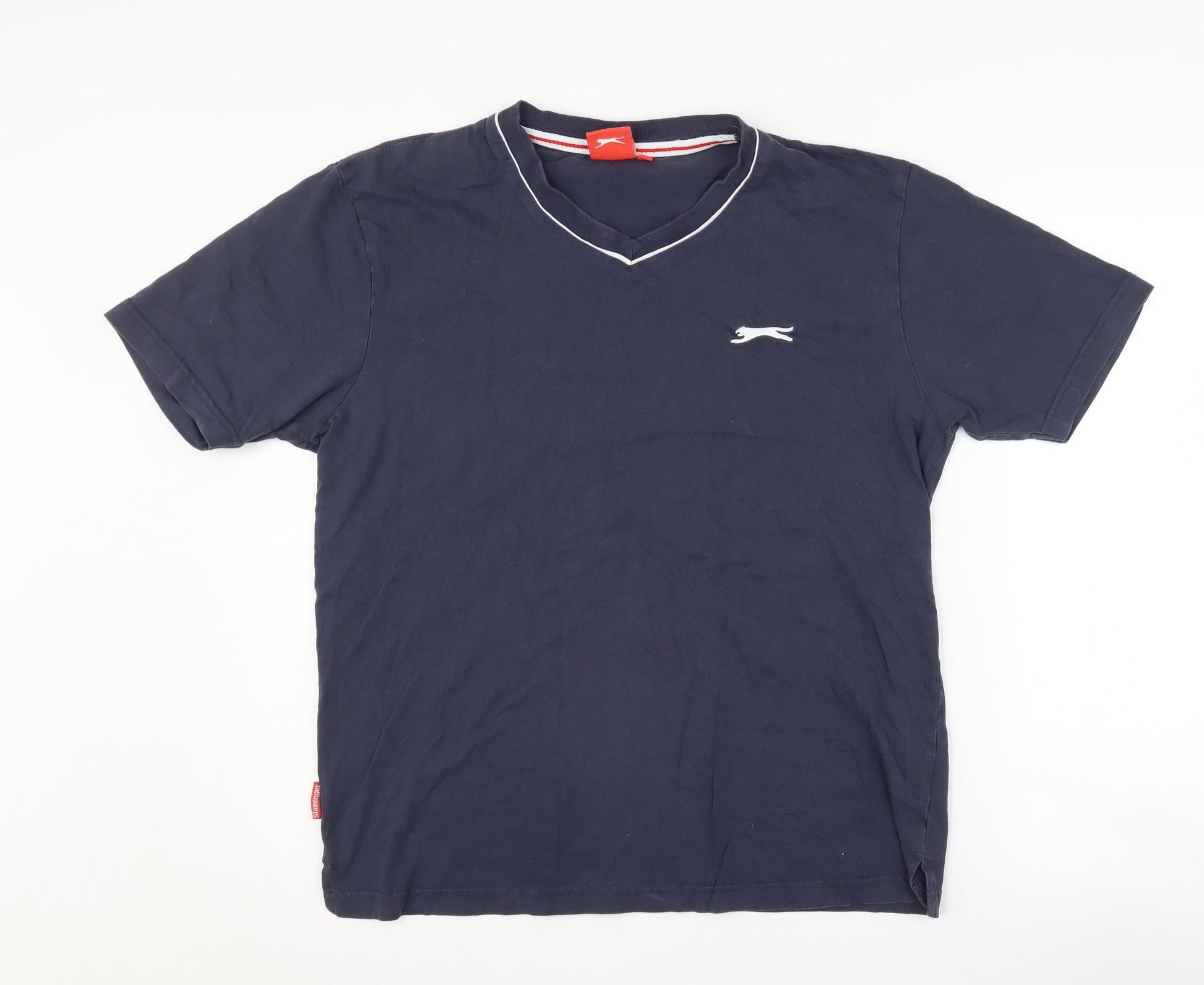 Slazenger Men's Blue V-Neck T-Shirt, Medium, Cotton, Logo Accent
