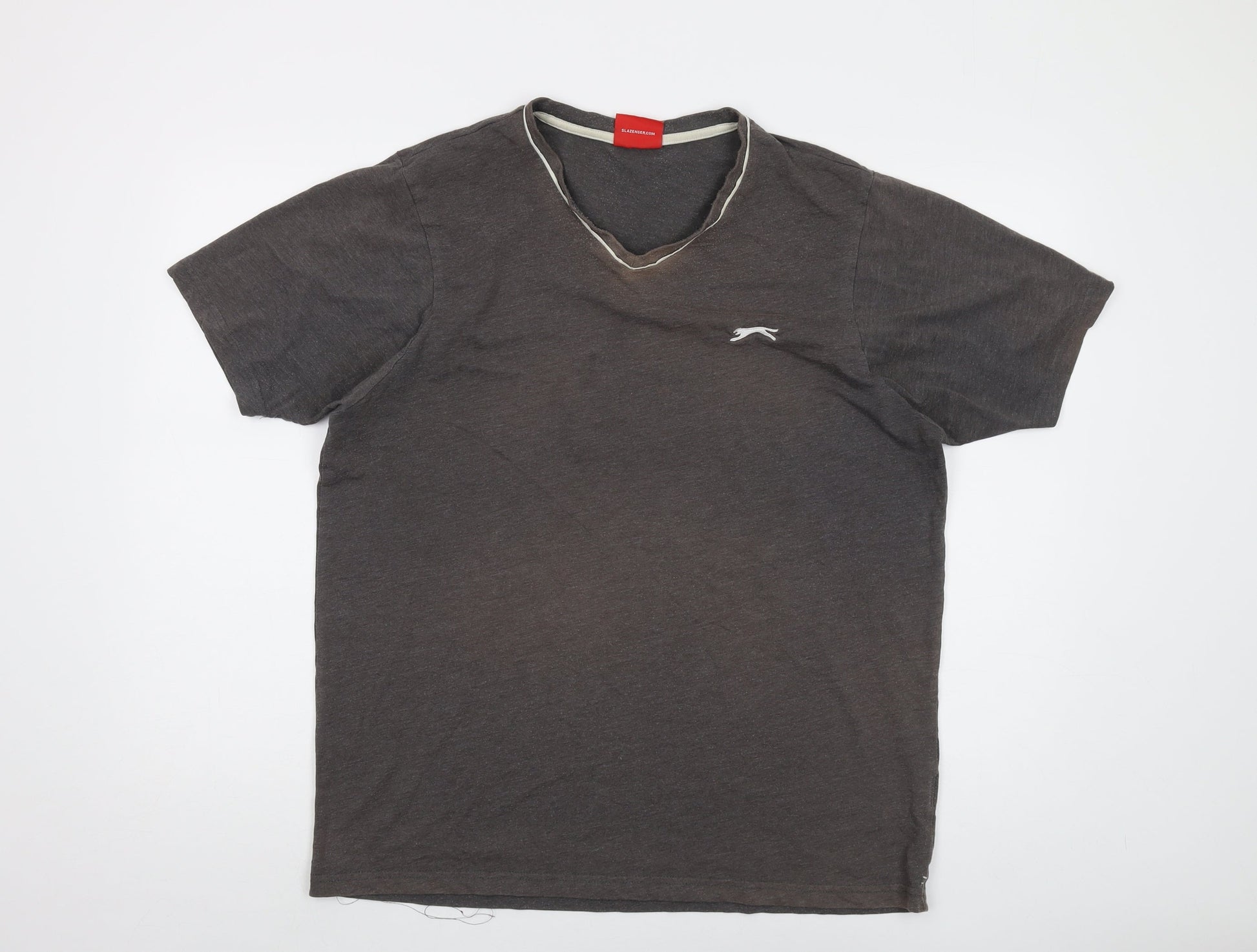 Slazenger Mens Grey Cotton T-Shirt Size L V-Neck