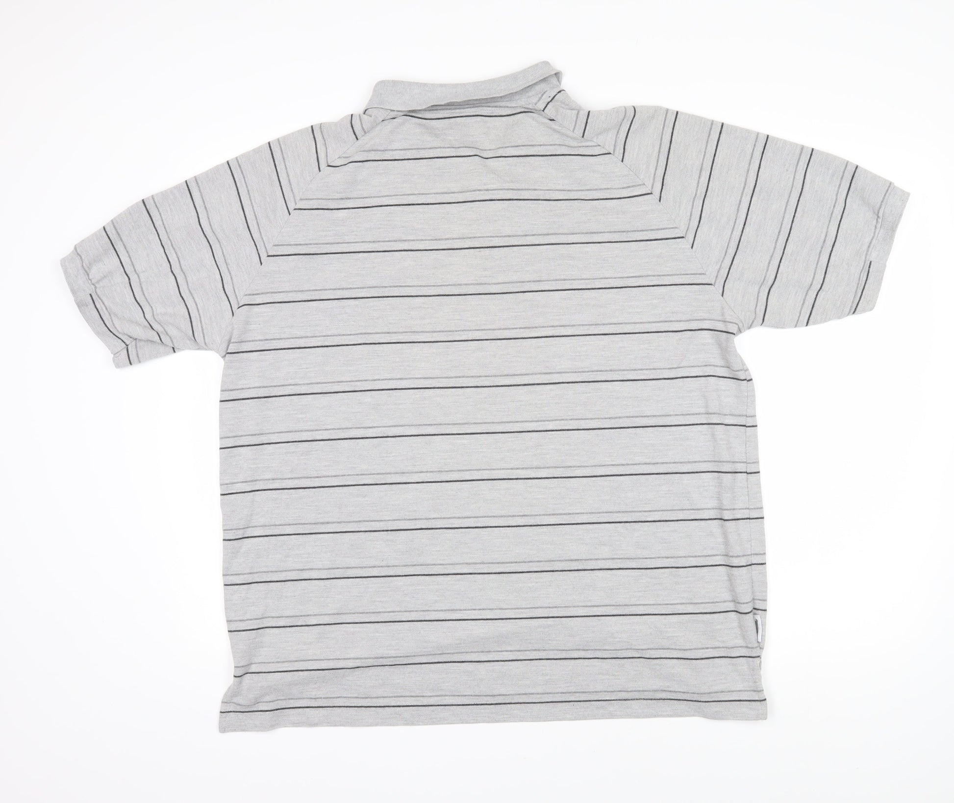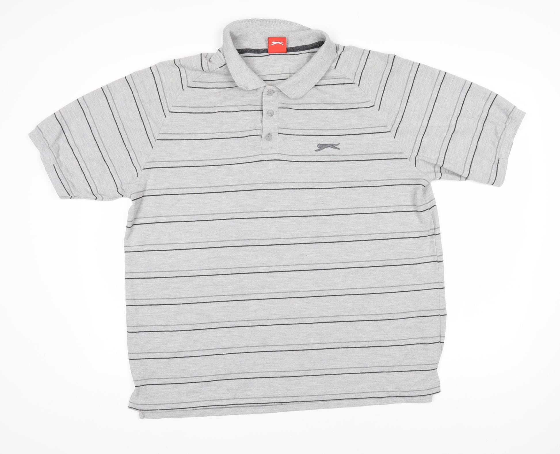 Slazenger Mens Grey Striped Polyester Polo Size 2XL Collared Button