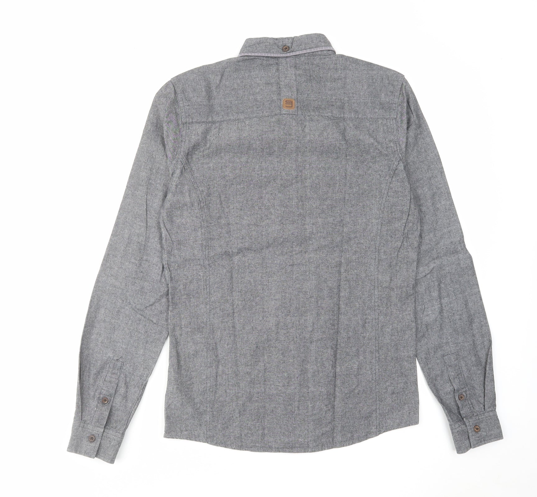 Smith & Jones Mens Grey Cotton Button-Up Size S Collared Button