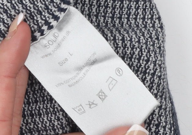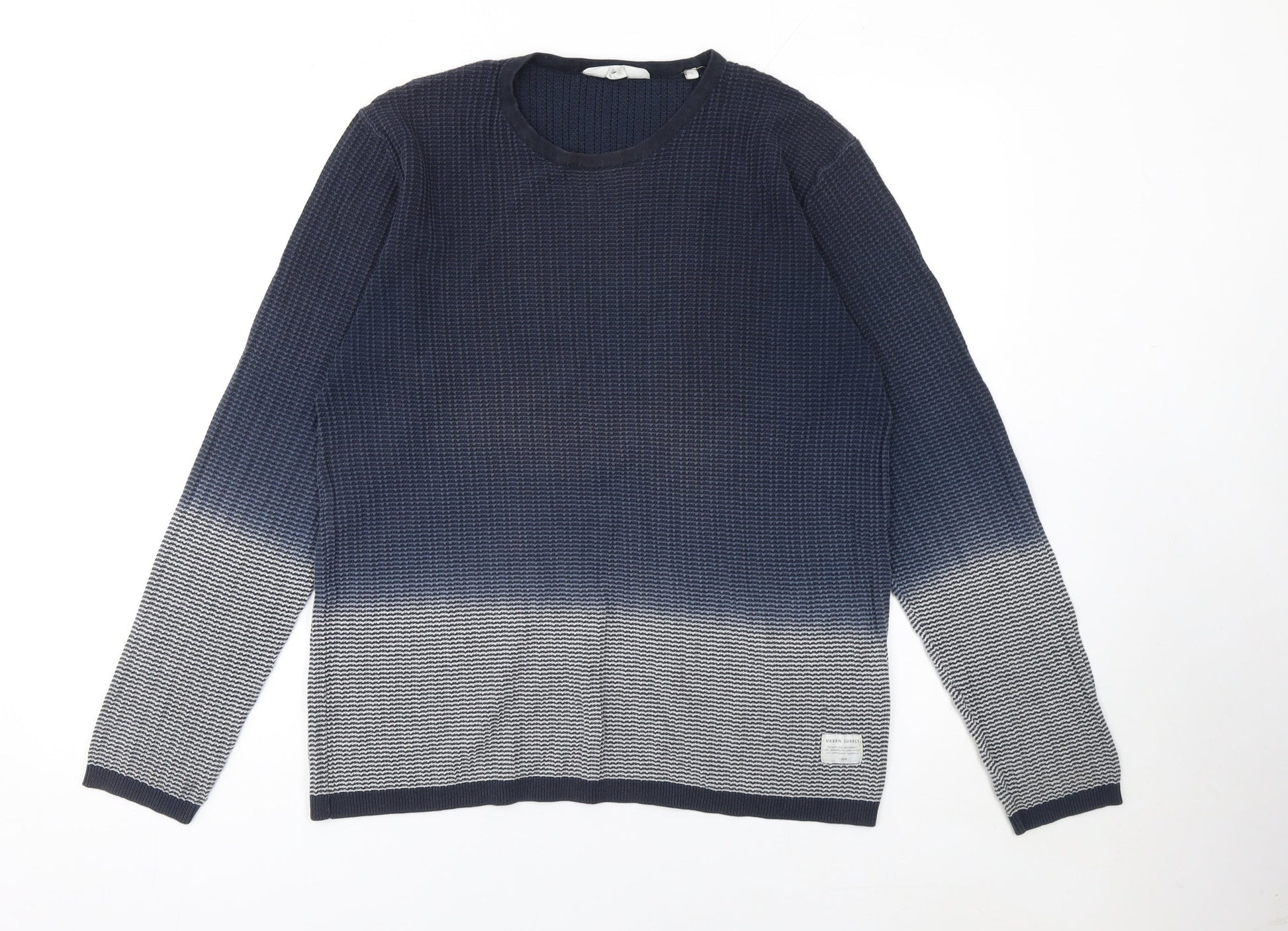 Solid Men's Blue Cotton Waffle-Knit Long Sleeve Jumper L