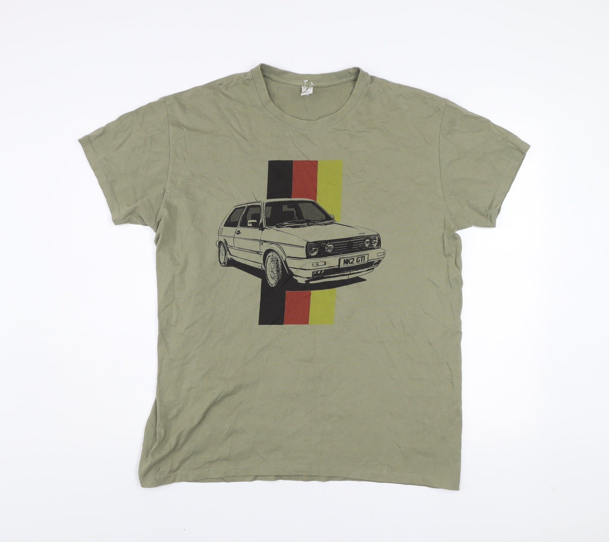 SOLS Men's Green XL Car Graphic Crew Neck Cotton T-Shirt