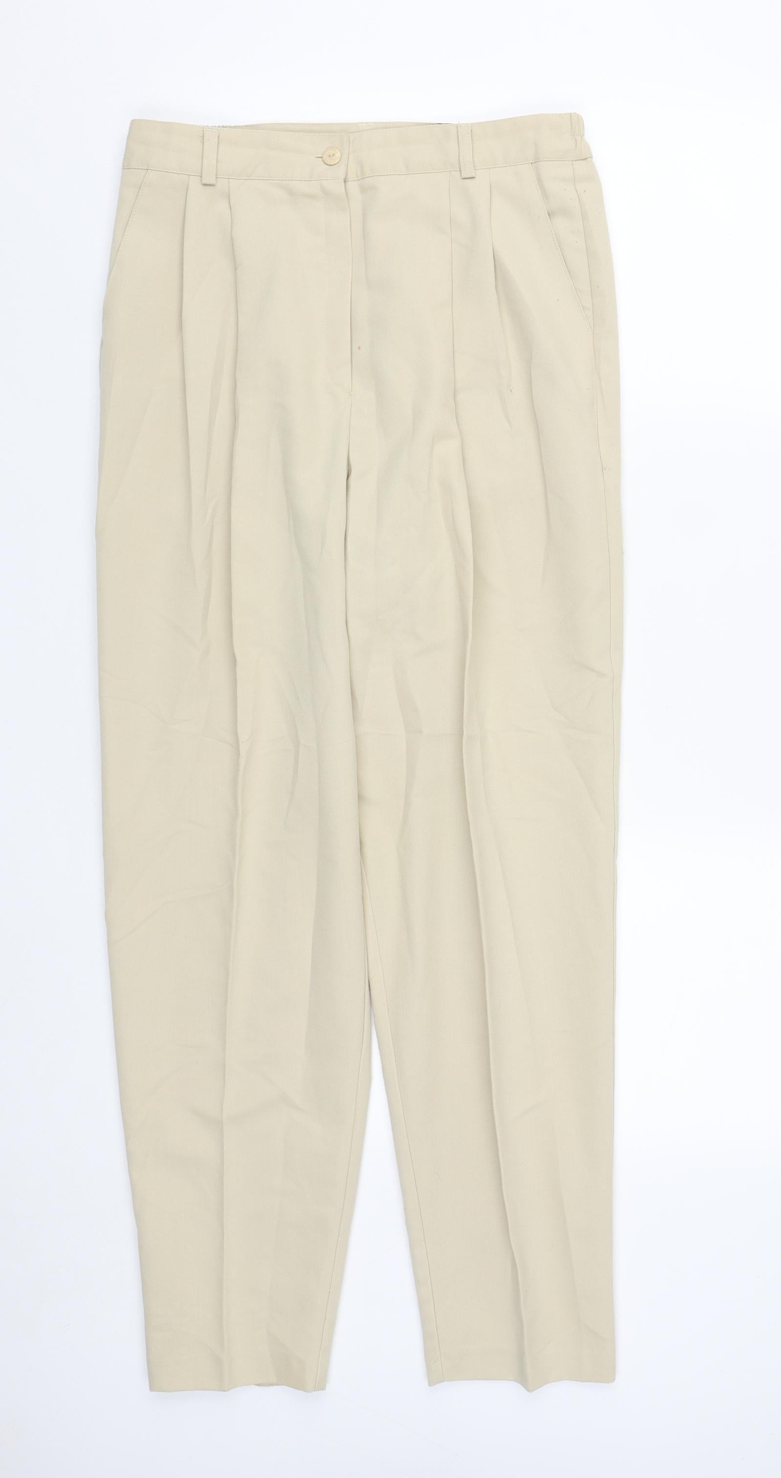 Soon Womens Beige Polyester Trousers Size 14 L30 in Regular Zip