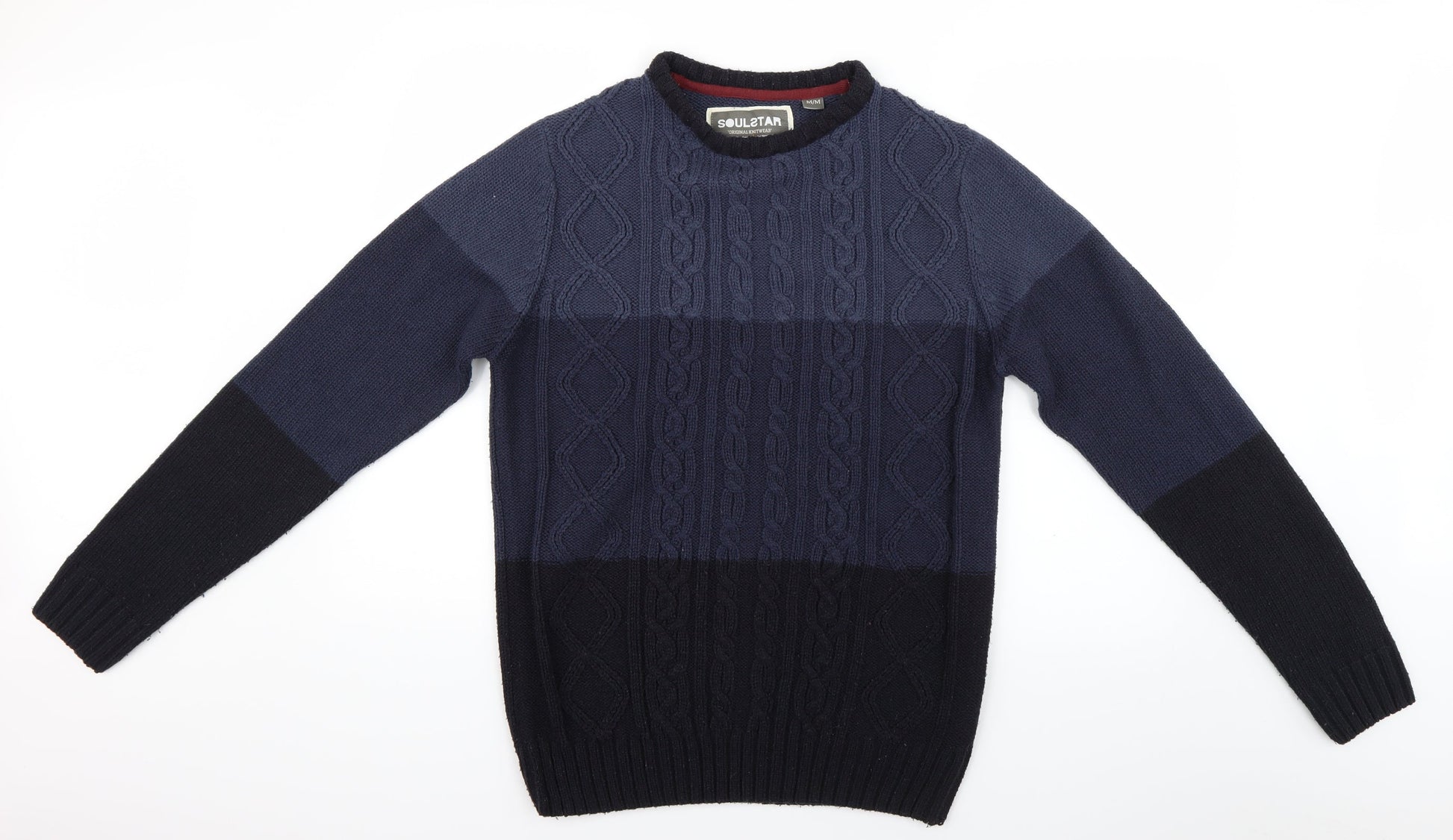Soul Star Mens Blue Striped Pullover Jumper Size M